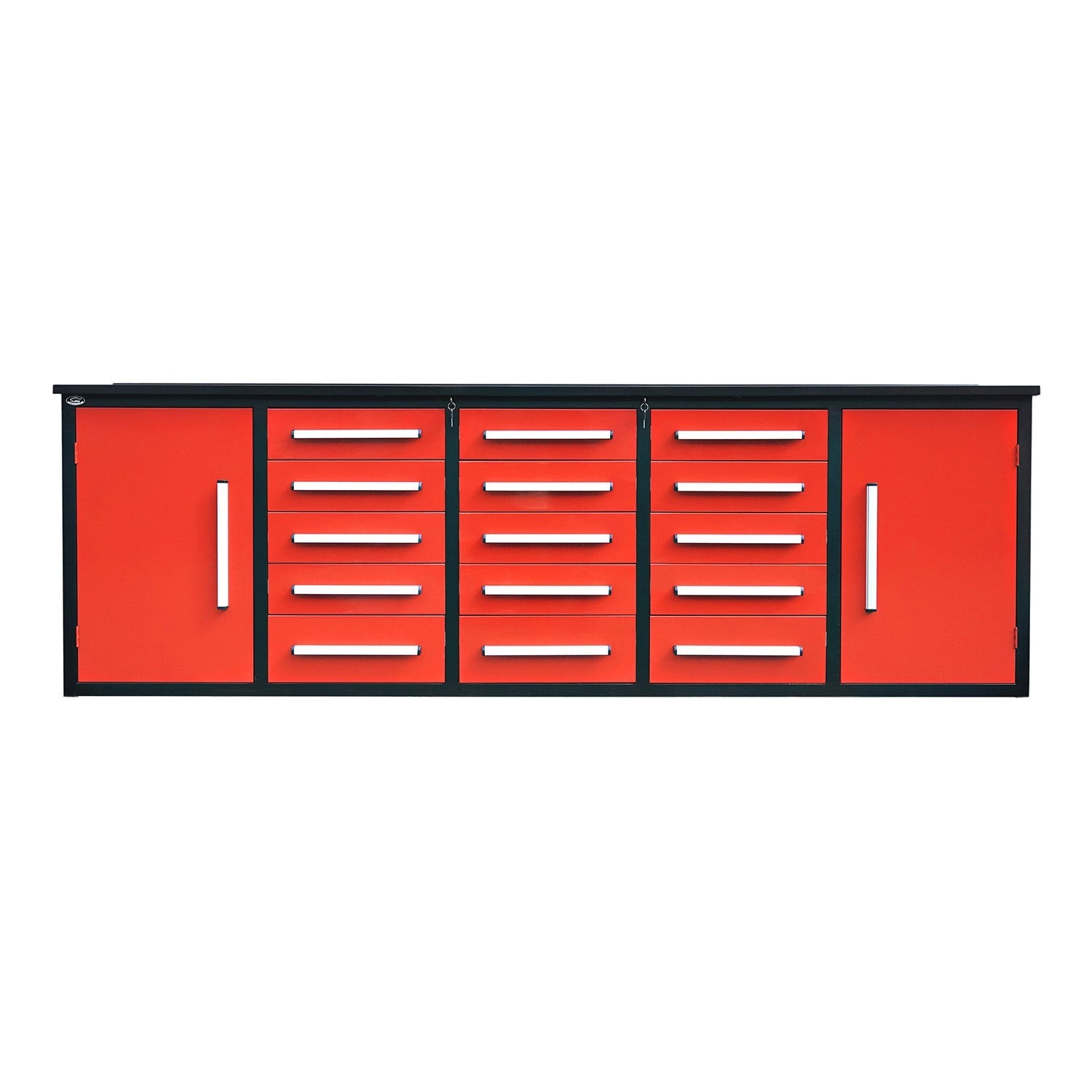 This 10ft storage cabinet with a workbench with 15 drawers and 2 cabinets will bring you happiness. The unit comes assembled completely so you don’t need a wrench, screwdriver, or hardware to build it. Quality builds for the price. This is another version of the 7’ Storage Cabinet with a Workbench with 10 Drawers and 2 Cabinets with a longer length of 10 ft. This is exactly what you need for your workshop, basement, office, garage, or laboratory.
