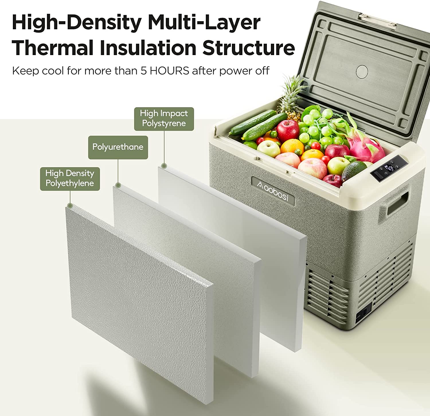Q: What is the AOBOSI 12 Volt Car Fridge 53Qt/50L Green - CL50-GN-WIFI?