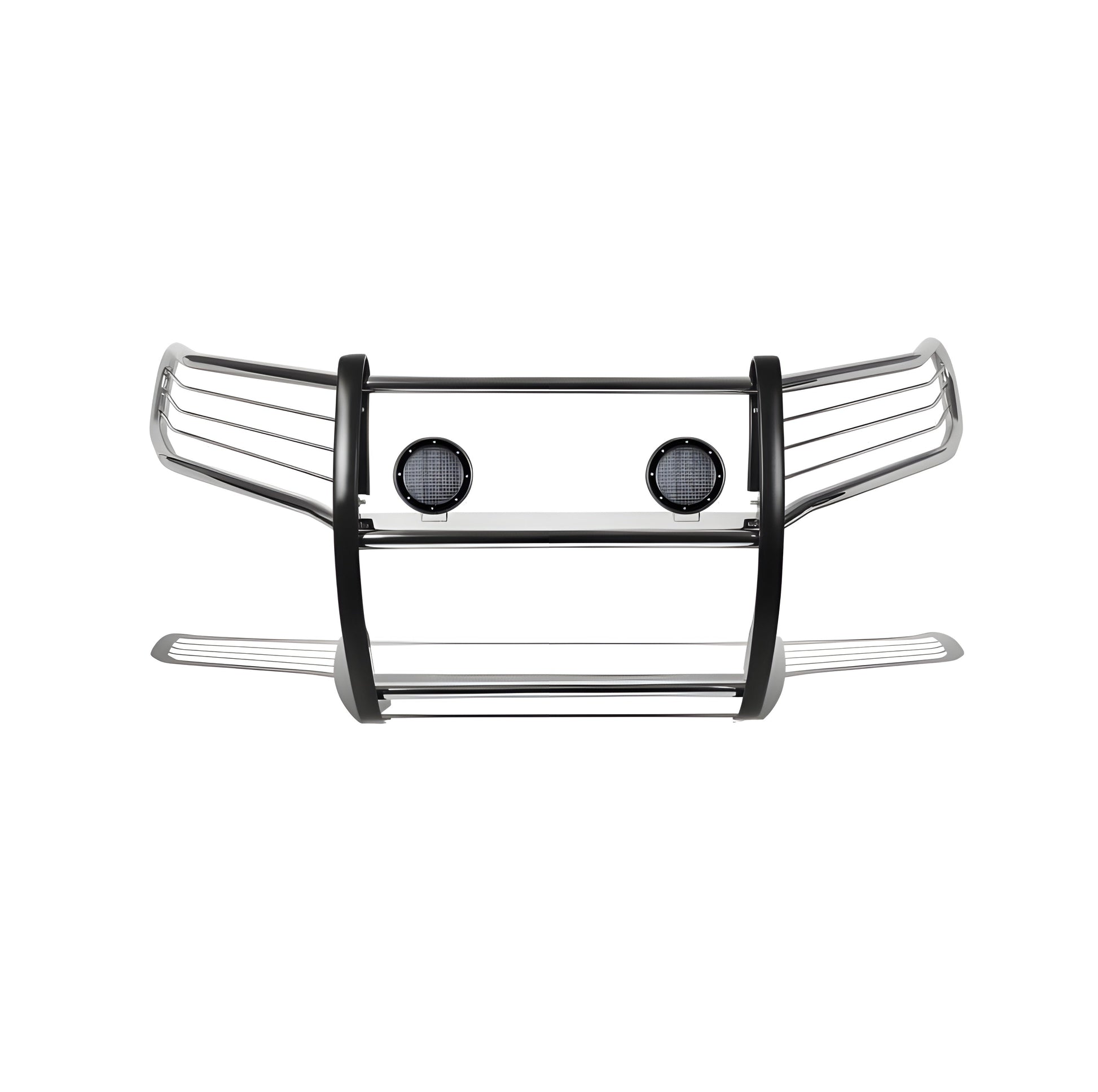 Upgrade your vehicle's protection and style with the 17TU31MSS-PLFB Black Horse Grille Guard Kit. This premium grille guard kit is designed not only to enhance the aesthetics of your vehicle but also to provide unparalleled safeguarding for your front end against road debris and minor impacts. Perfect for adventure enthusiasts and everyday drivers alike, this grille guard is a must-have addition to your vehicle.