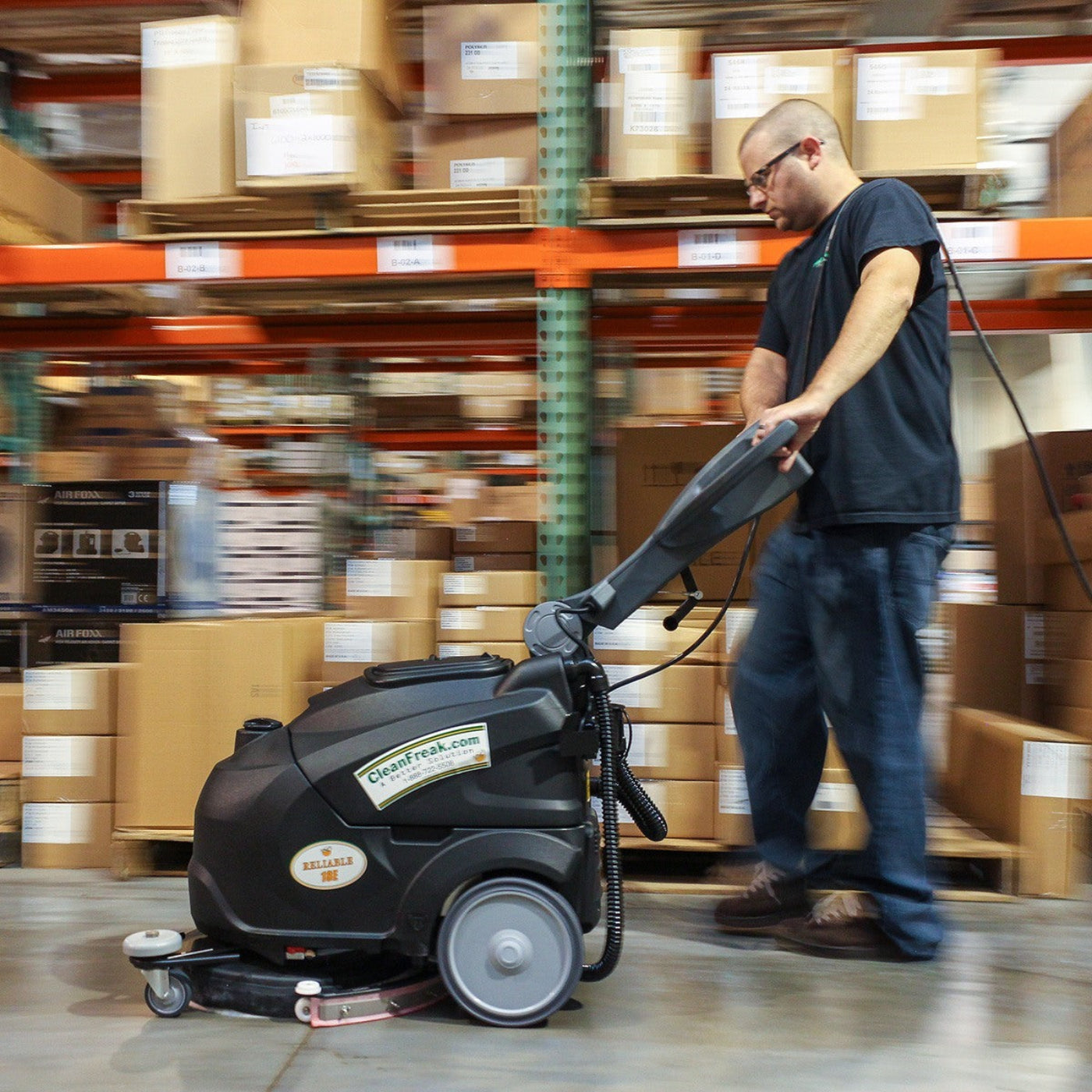 The Reliable electric auto scrubber is very compact and easy to handle. Everything from the rugged materials used in production to the labor saving design makes this unit the most reliable, easy to use machine available on the market today. The price to quality ratio of the Reliable line is unsurpassed. For our best priced battery powered model that is comparable, but slightly larger than this unit, we have the Performer 20" hard floor scrubber.