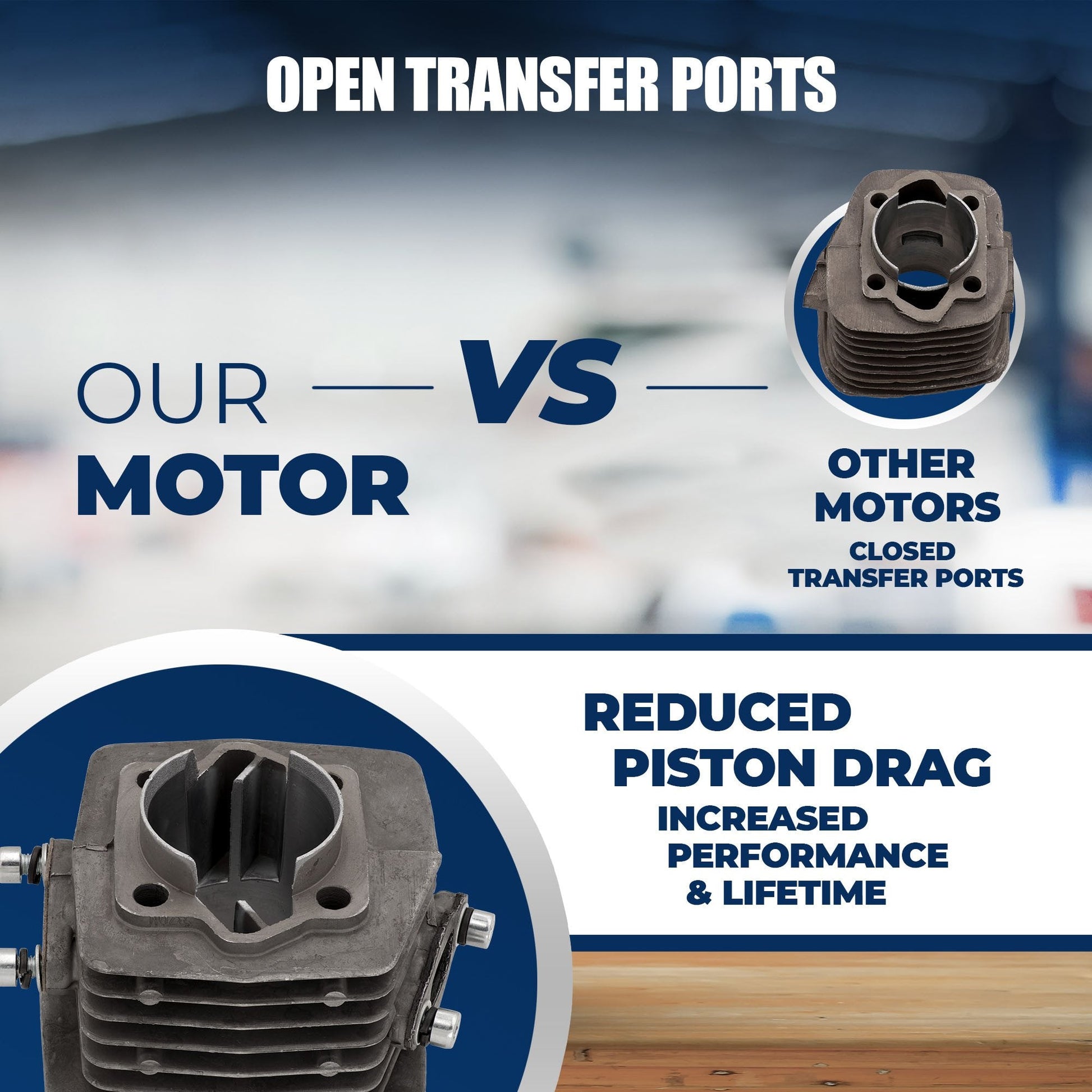 Enhanced Performance: The BBR Tuning 66/80cc 2-Stroke Engine (STK-BEK80-S) significantly boosts the bike's power, providing higher speed and smoother acceleration compared to stock engines.