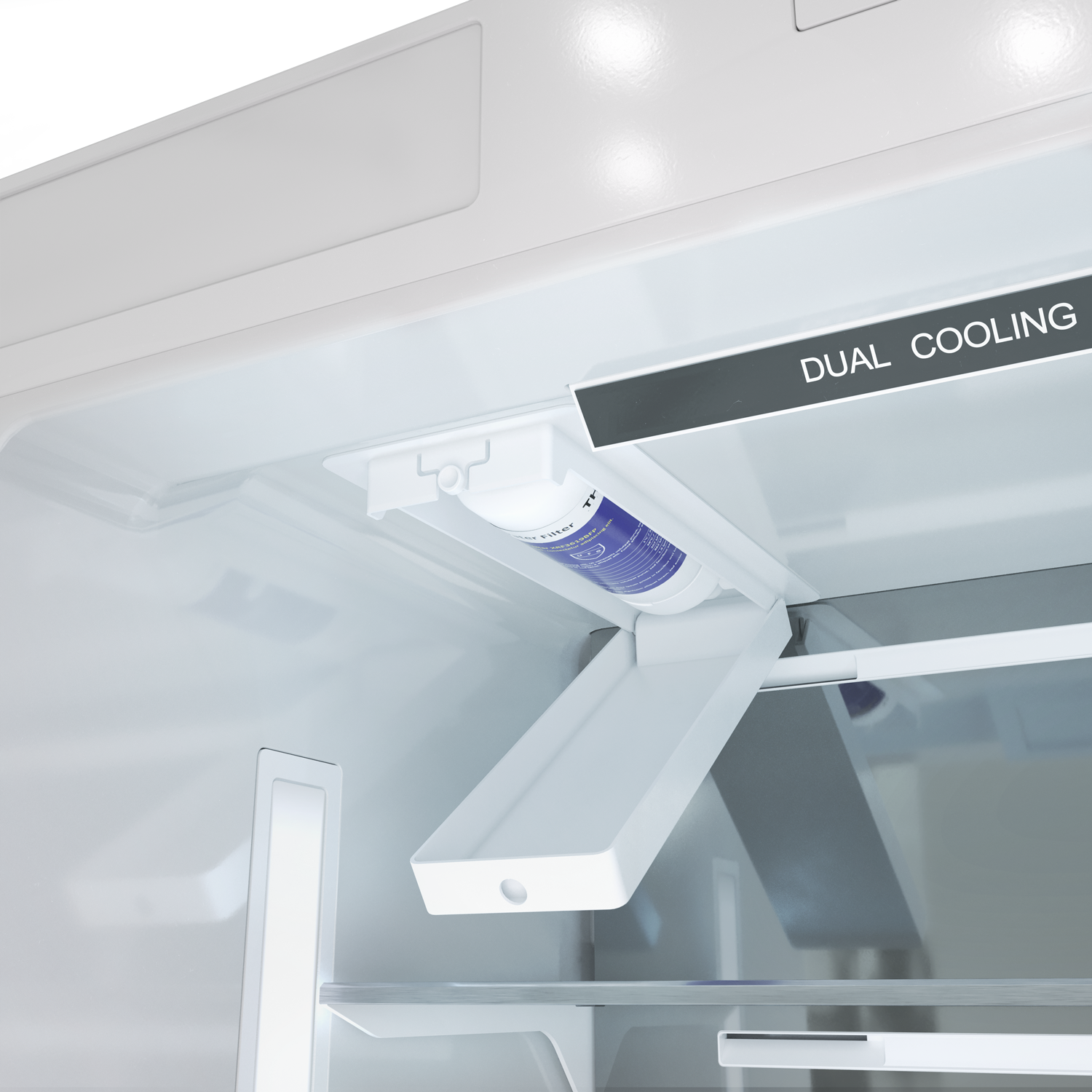 Bottom Freezer Convenience: Easy-glide freezer drawer provides organized and accessible storage.