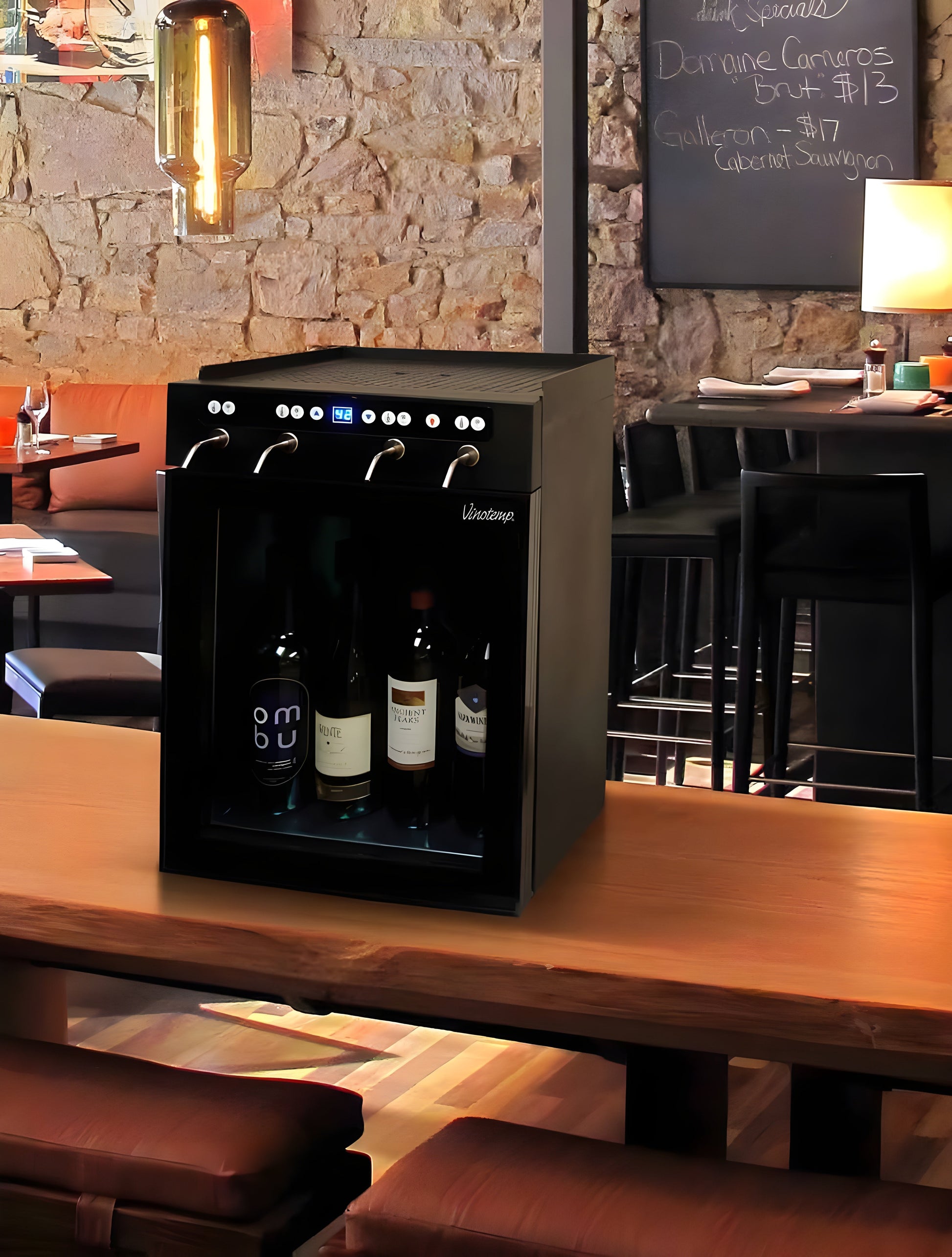 Vinotemp’s state-of-the-art 4 Bottle Wine Dispenser easily dispenses, preserves and chills four bottles of red or white wine. With easy push button controls, you can pour a perfect glass of wine at the touch of a button. Our 4 Bottle Wine Dispenser is an outstanding gift item for any wine aficionado and a great way for restaurants and wine bars to serve and preserve open bottles of wine.