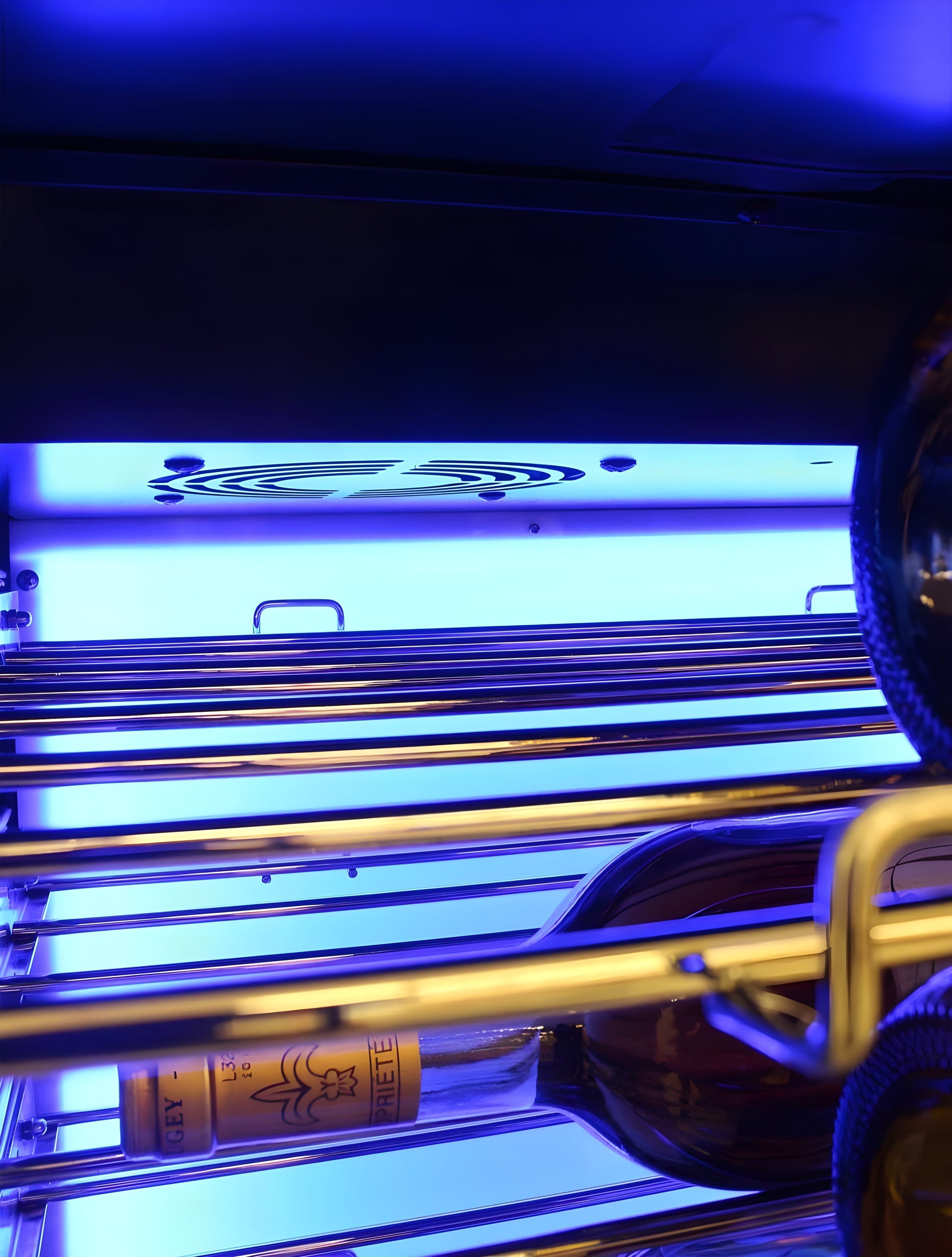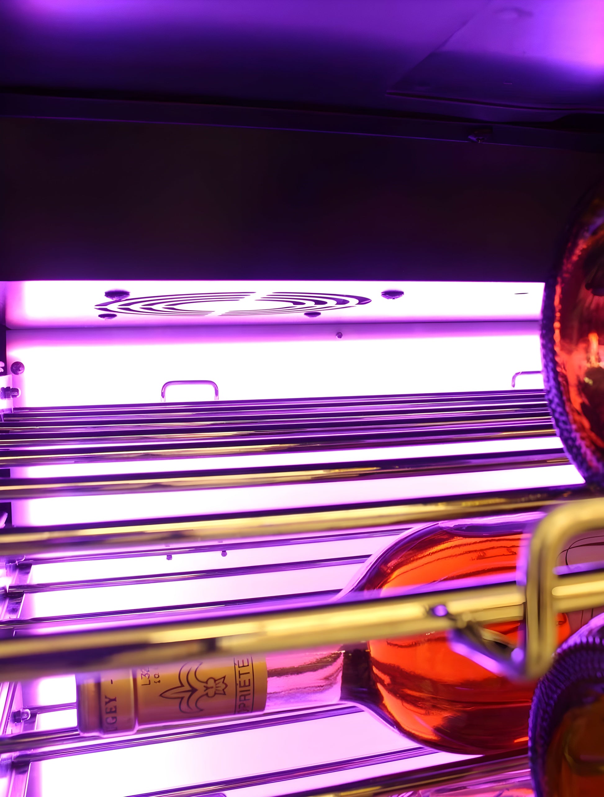 A: It includes soft interior LED lighting to elegantly showcase your wine collection.