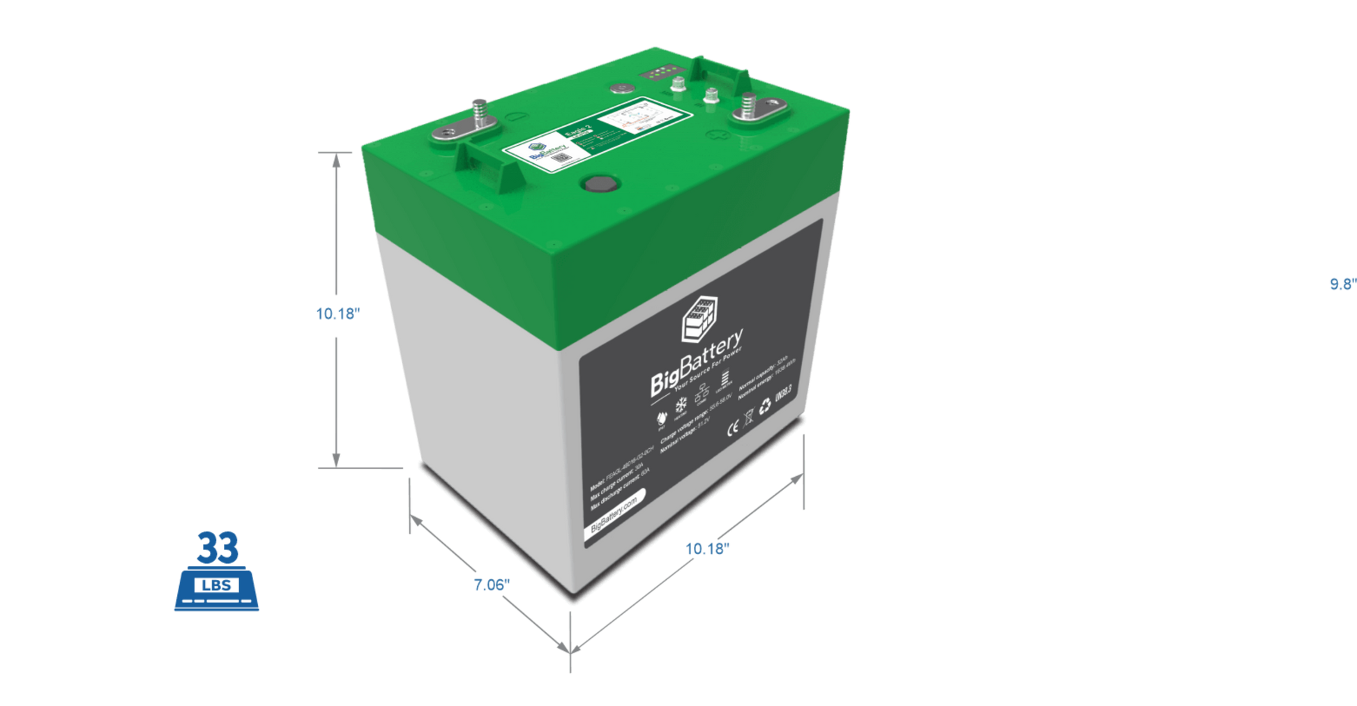 2ND GENERATION POWER TAKES FLIGHT! Introducing BigBattery’s all-new 48V 1.63 kWh LiFePO4 EAGLE 2. This battery embodies the reliability and durability you’ve come to expect from BigBattery solutions, packing Tier 1 LFP cells in a compact, GC2 form factor. This energy-dense design allows for effortless installations in your golf cart, utility vehicle, RV, or camper van, and the EAGLE 2 serves as a mirror-image replacement for any stock T-105 lead-acid battery.