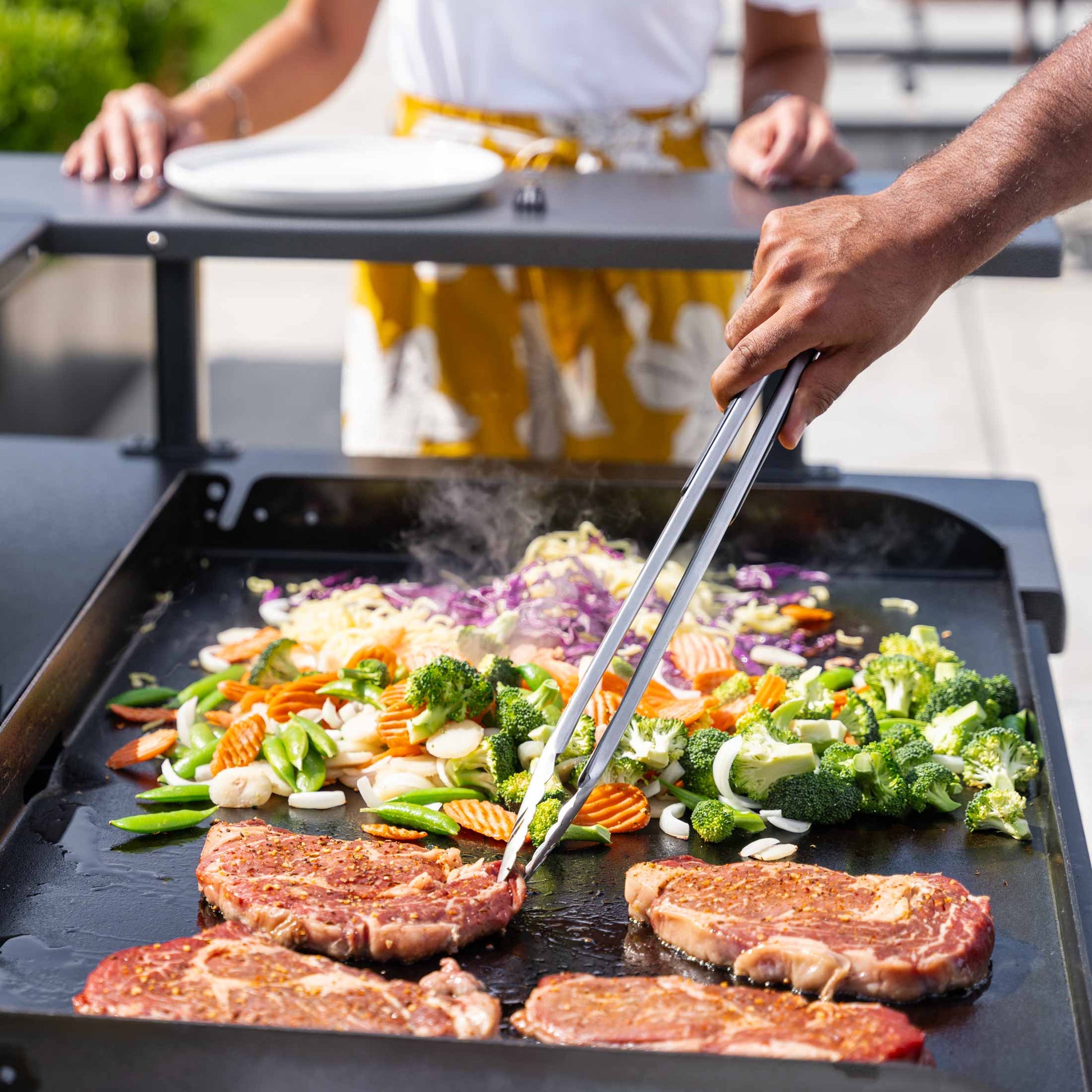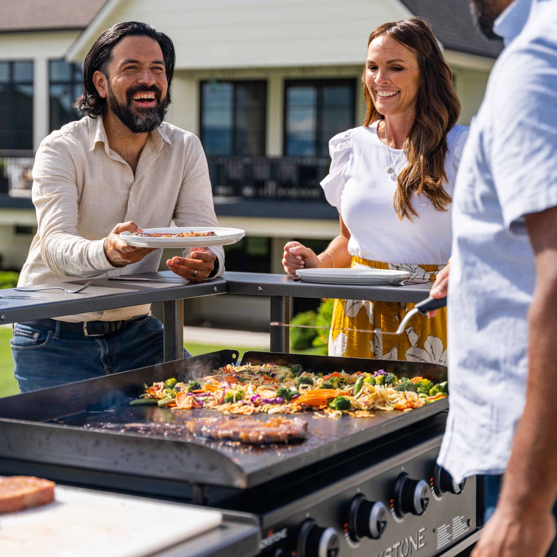 The 5-Person Chef’s Table will transform your backyard and be the centerpiece of your outdoor kitchen. Thrill friends and family with an impressive variety of food and the ability to engage with the cooking experience. This standalone unit is equipped with a 36” Omnivore Griddle Plate and Blackstone’s patented Rear Grease Management System making cleanup a breeze. Utilize the 4 independently controlled burners to warm tortillas on one side, while you sear steaks on another.