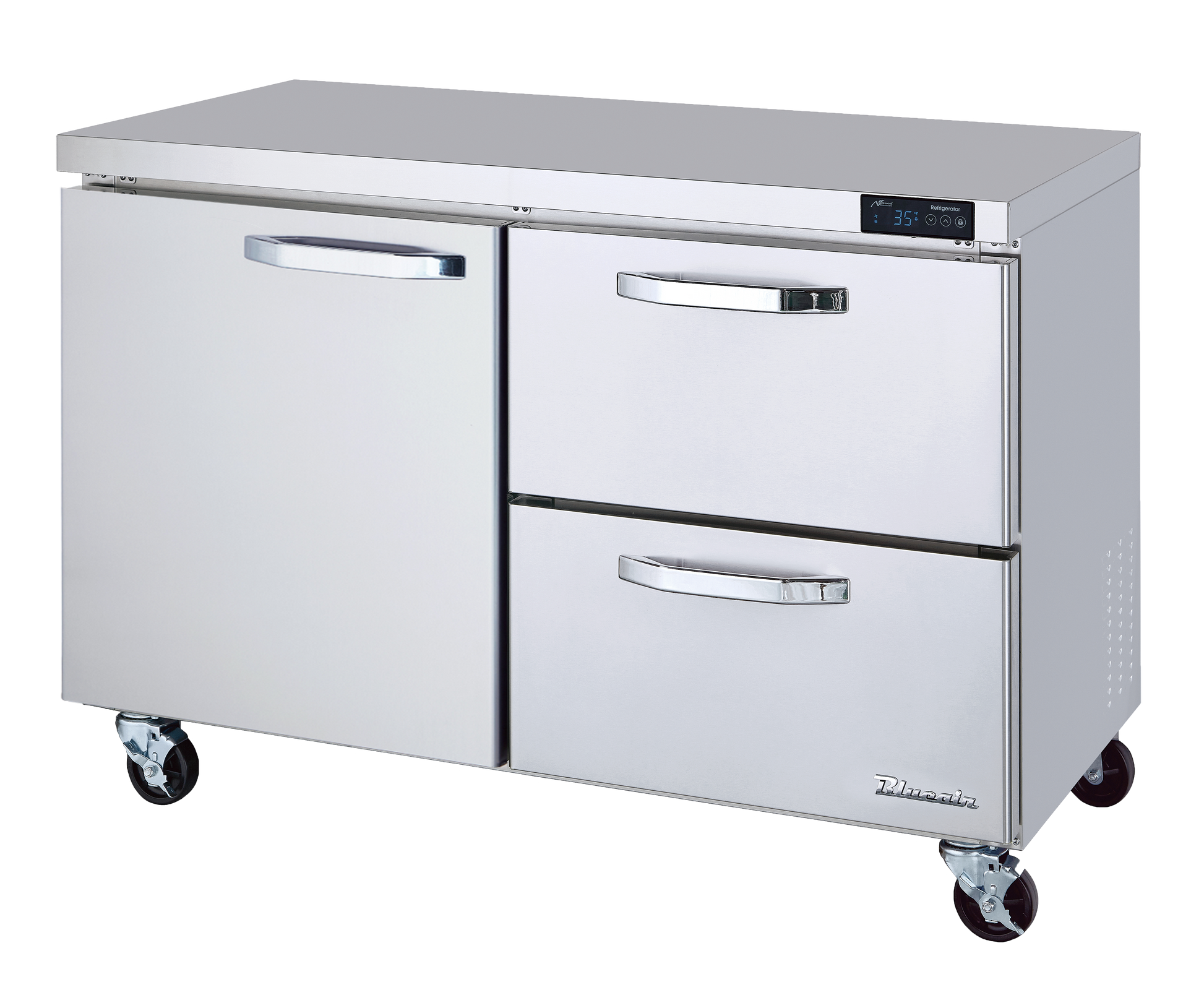 Compact undercounter design maximizes workspace while providing convenient cold storage.