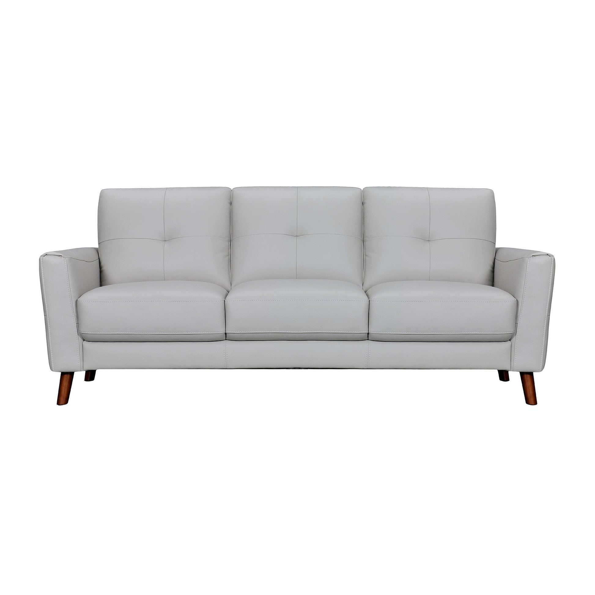 Made of the highest quality, supple leather, this 82-inch light slate gray leather sofa with brown legs will be the star of your space. The high grade premium leather used makes your lounging luxuriously comfortable and adds an elegant appeal to your space. Solid colors give you lots of decorative options and are easy to work into your decor scheme. Web suspension construction gives this piece strong support and makes it comfortable to sit even for long periods of time. Square arms offer a comfy place to rest. The tufted stitching pattern adds visual interest and fine designer detailing. A great showpiece for your room, this sofa is a must have. 35-inch H x 82-inch W x 37-inch D