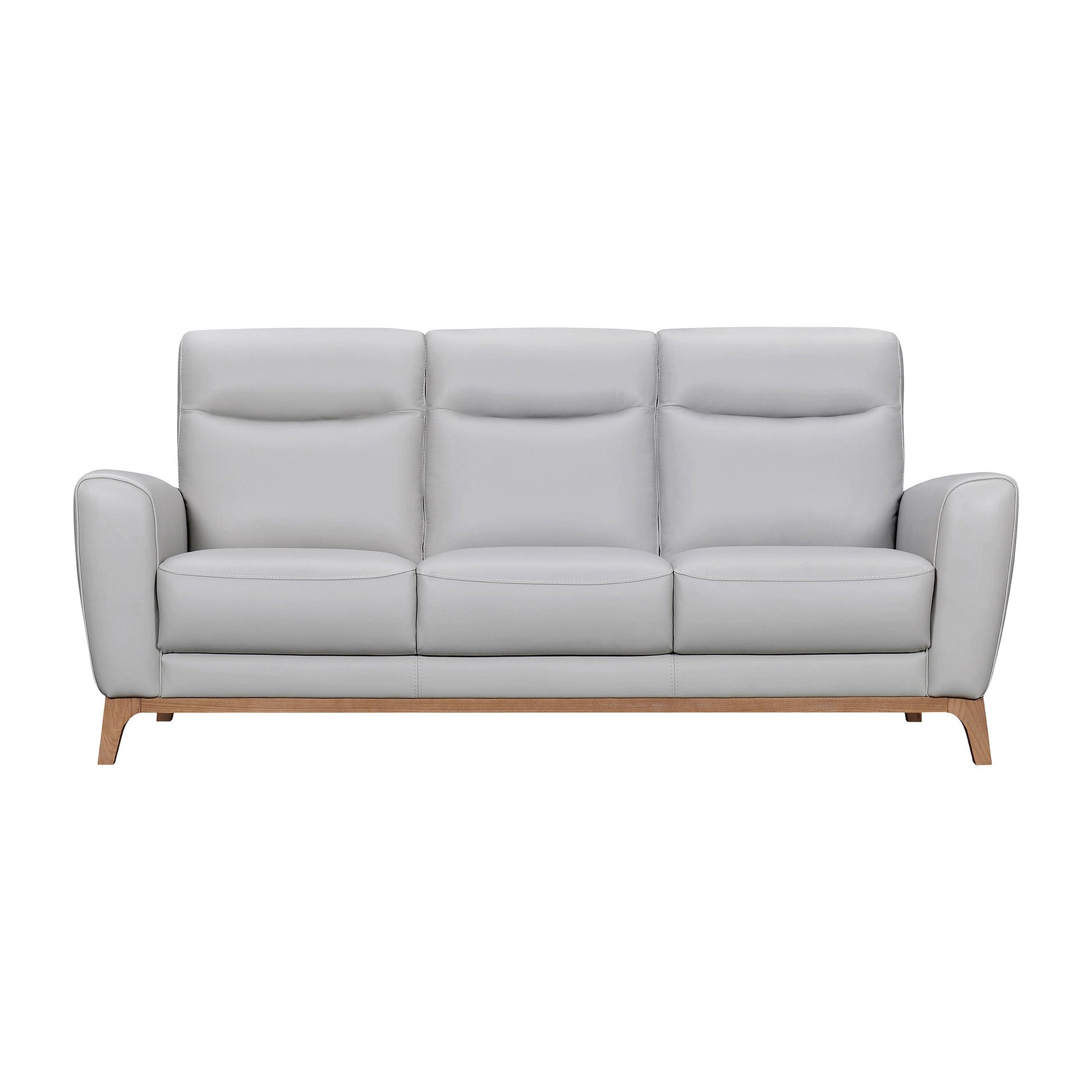 An interior designer's dream, this buttery soft high grade leather 83-inch gray leather sofa with brown legs will bring just the right touch to your space. The premium leather used makes your lounging luxuriously comfortable and adds an elegant appeal to your space. Solid colors give you lots of decorative options and are easy to work into your decor scheme. Web suspension construction gives this piece strong support and makes it comfortable to sit even for long periods of time. Square arms offer a comfy place to rest. A great showpiece for your room, this sofa is a must have. 39-inch H x 83-inch W x 38-inch D