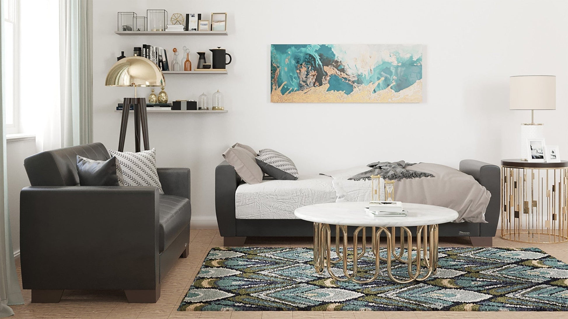Q: What are the standout features of the Modway 84" Black Faux Leather Sleeper Sofa?