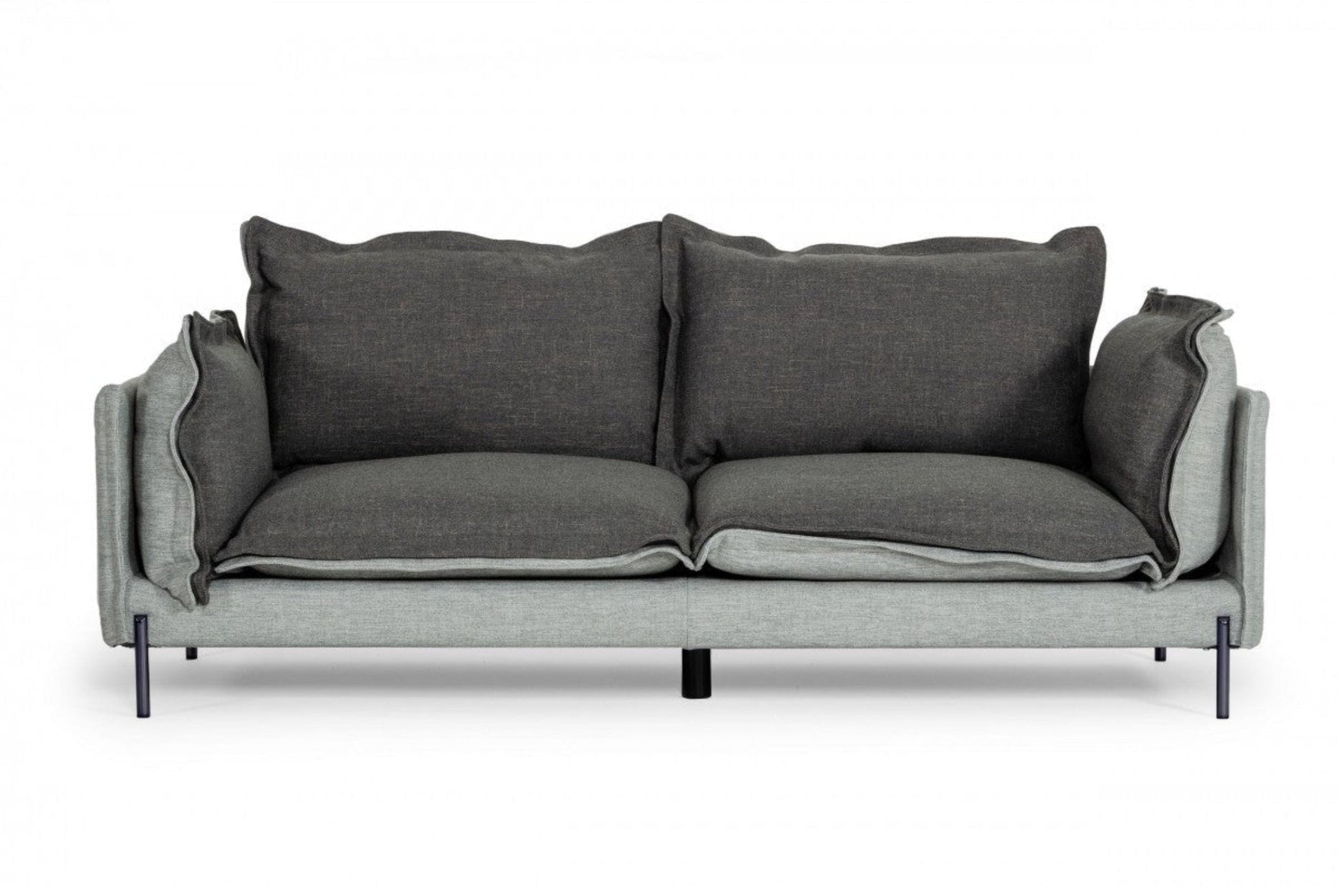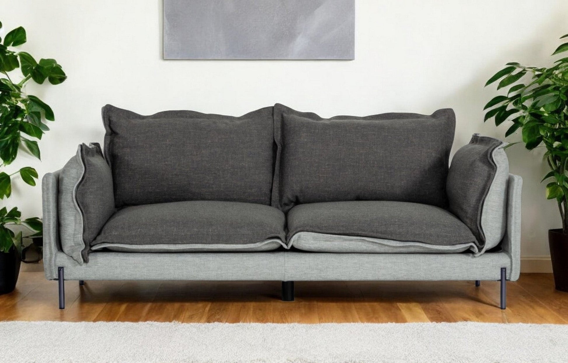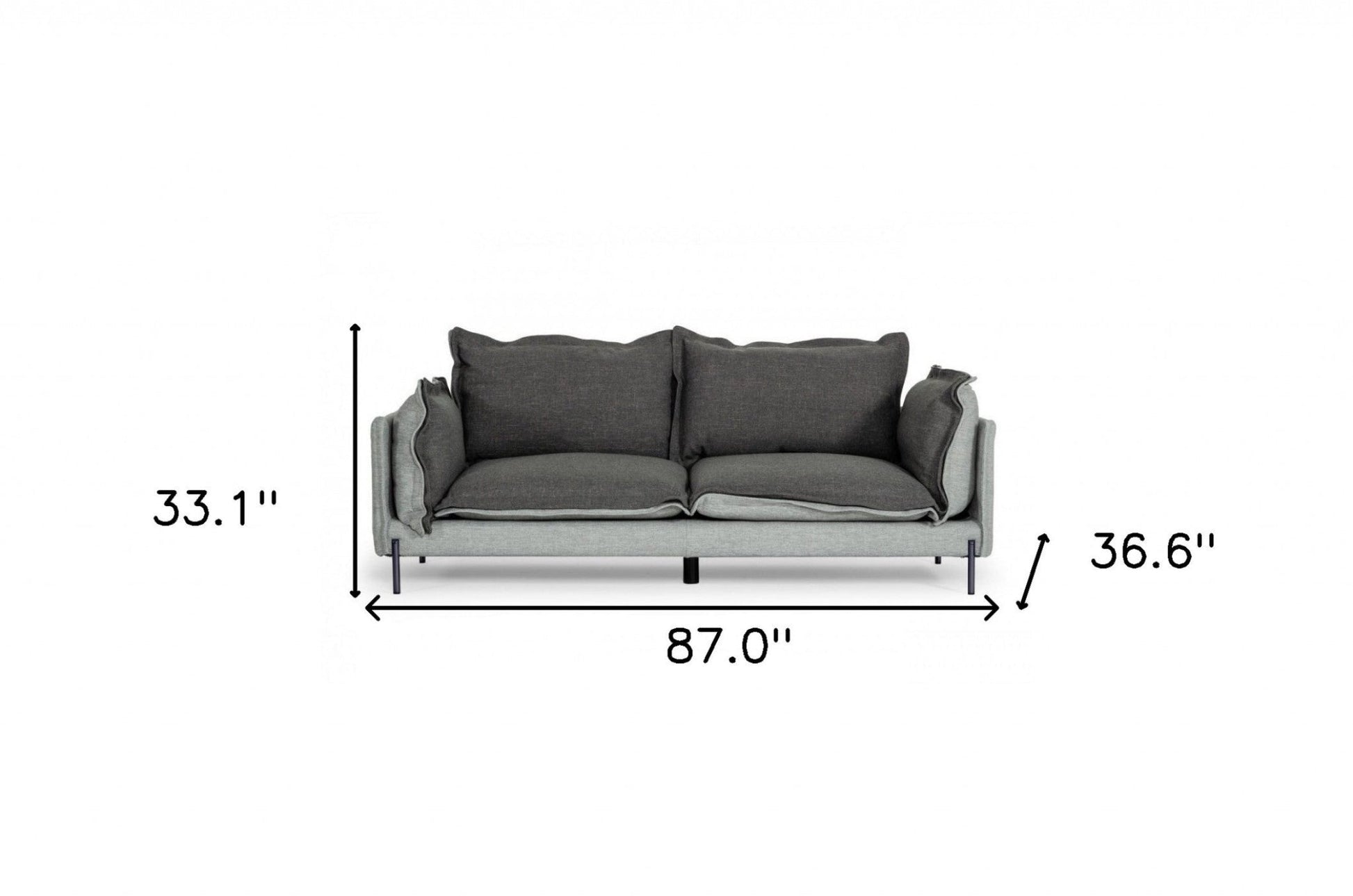 Transform your home's interior with this luxurious 87-inch dark gray polyester blend sofa with silver legs. This solid color standard is made from soft, sturdy, and resilient polyester blend that is a good option for families and in frequently used seating areas. Solid colors give you lots of decorative options and are easy to work into your decor scheme. Sinuous springs construction gives this piece strong support and makes it comfortable to sit even for long periods of time. Removable seat cushions make this sofa easy to manage. Square arm offer a comfy place to rest. Silver metal legs effortlessly elevate the room and add a touch of contemporary design. A great showpiece for your room, this sofa is a must have. 33.1-inch H x 87-inch W x 36.6-inch D