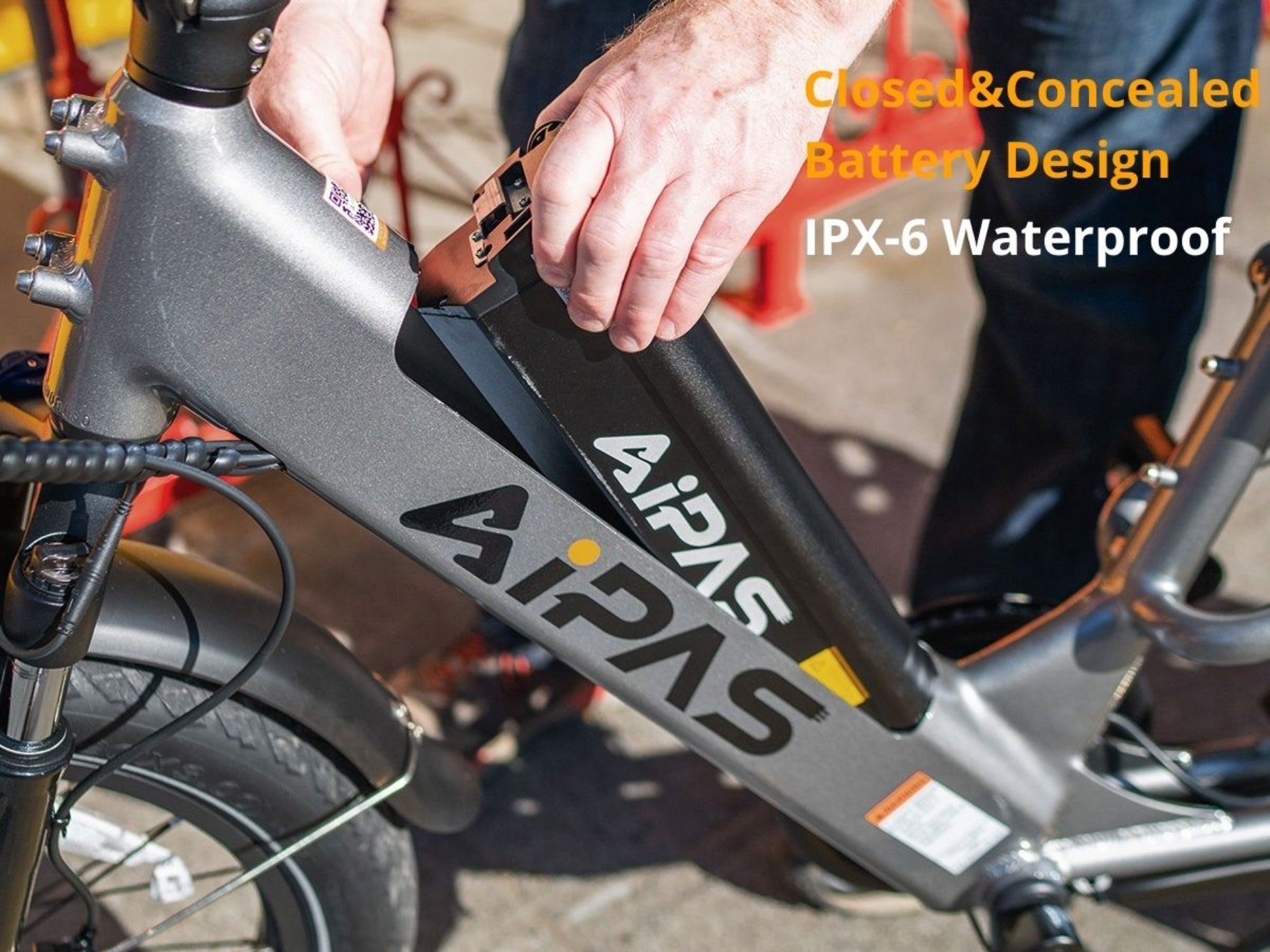 Aipas A6 cargo electric bike for adults is equipped with 20 x 3.0'' fat tires, the front hydraulic lock suspension further enhances the comfort by absorbing shocks and bumps along the way. Moreover, the bike features 180mm hydraulic brakes and Shimano 7-speed gears, making this fat tire electric bike an excellent choice for tackling various terrains.