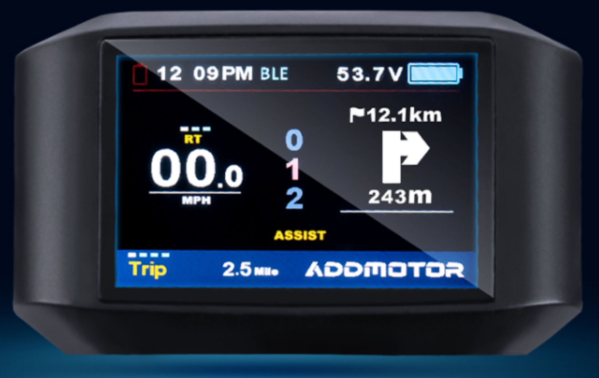 Addmotor 5-Inch LCD Smart Display: The full-color LCD allows easier viewing of the Google map, navigation, and other riding statistics like speed, riding mode, distance, time.