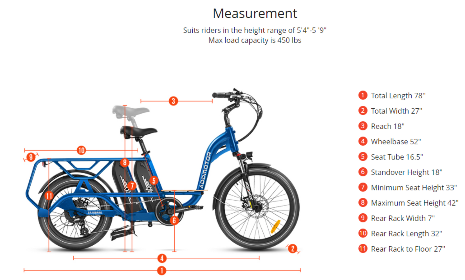 A: Perfect for riders 5’2” to 6’4” who need a dependable electric cargo bike for family or utility riding.