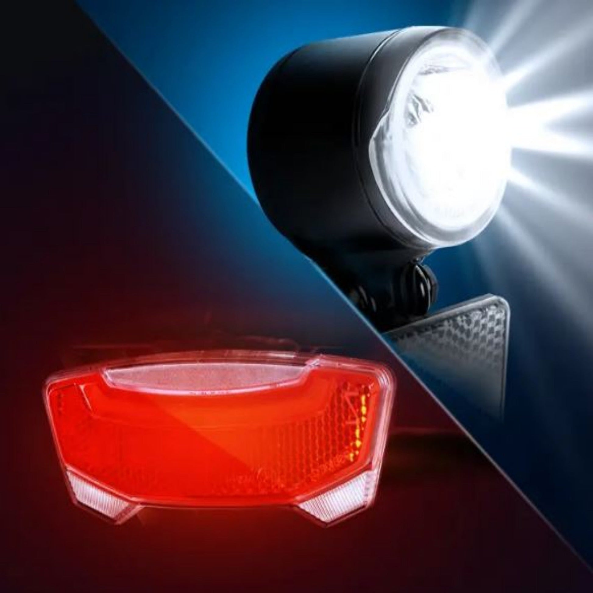 Additional Features: The trike includes a horn, bell, front and rear lights powered by the main battery, and a quick-release adjustable seat post.