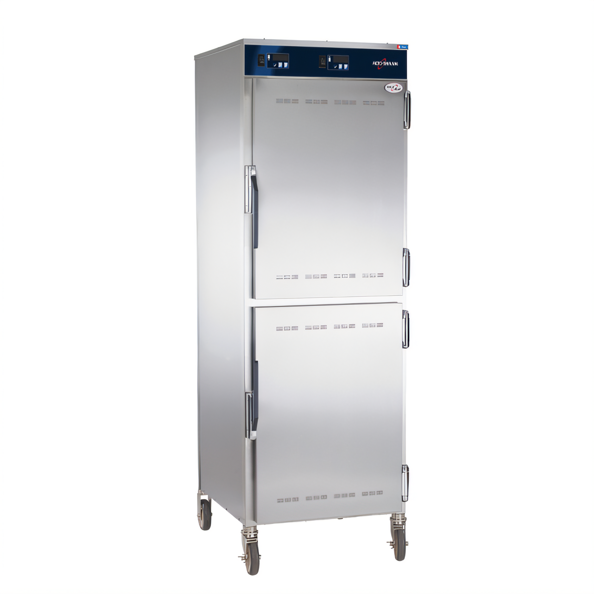 A: A Quick Ship Halo Heat heated holding cabinet with dual compartments, built to keep food hot, fresh, and ready to serve.