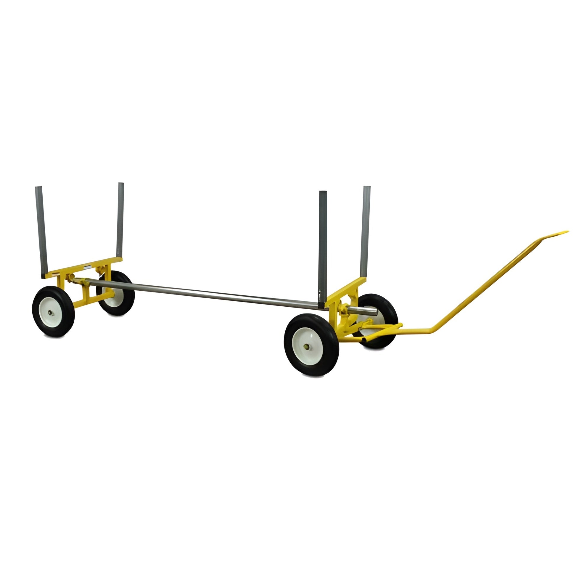 Customize the length of the cart to suit your needs. Comes with an 8’ pole and is adjustable up to 7 1/2 feet long. Or customize the cart to fit your needs by inserting the length of pole of your choice.Use in a construction setting to transport tube scaffolding, braces, pipe, and other long awkward items.