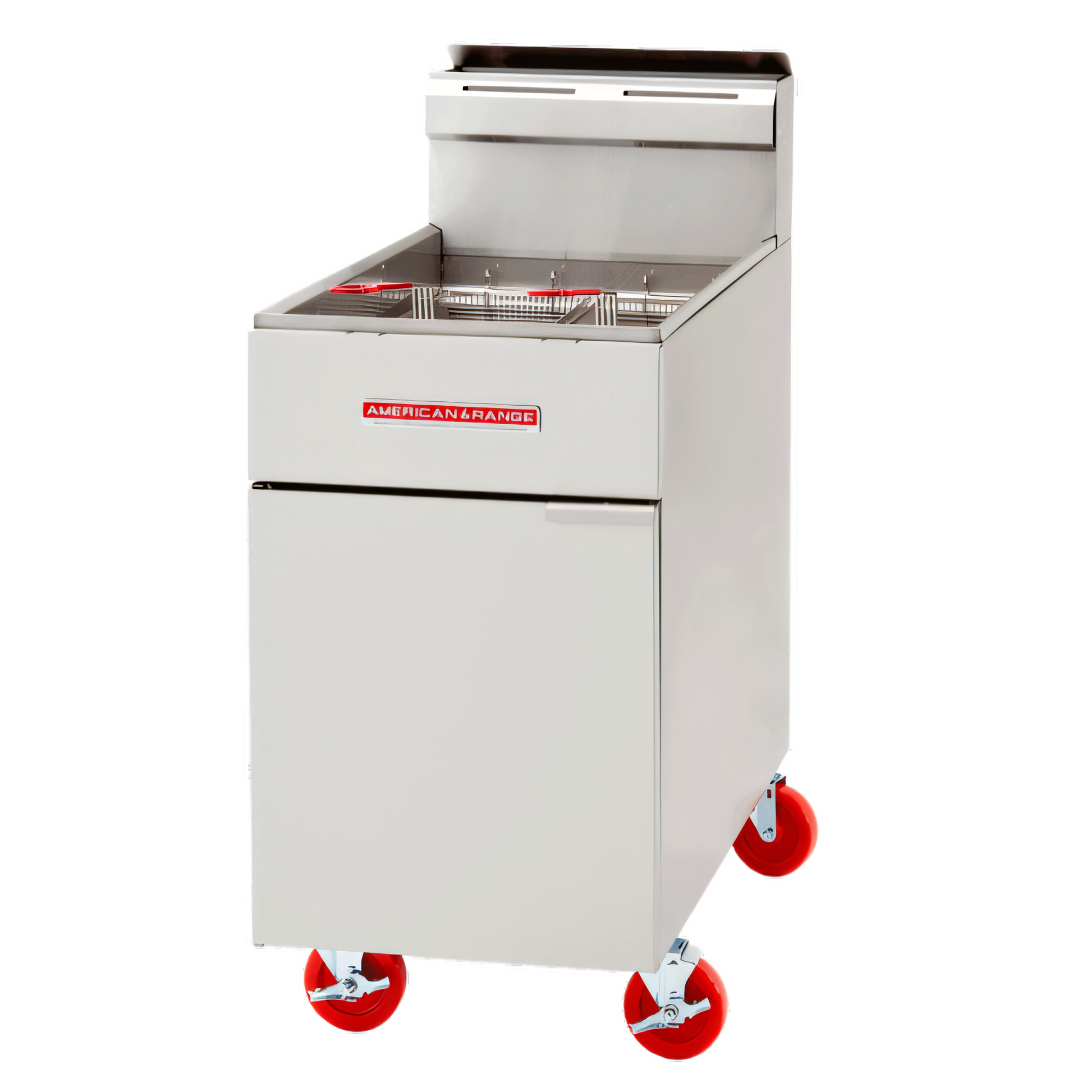 Built for high-volume kitchens that demand rock-solid reliability, the American Range AF-75 delivers consistent, fast recovery with four powerful tube burners and a heavy-gauge 304 stainless steel fry pot. A millivolt pilot system means no external electricity is required, making this floor fryer as simple to install as it is to operate.