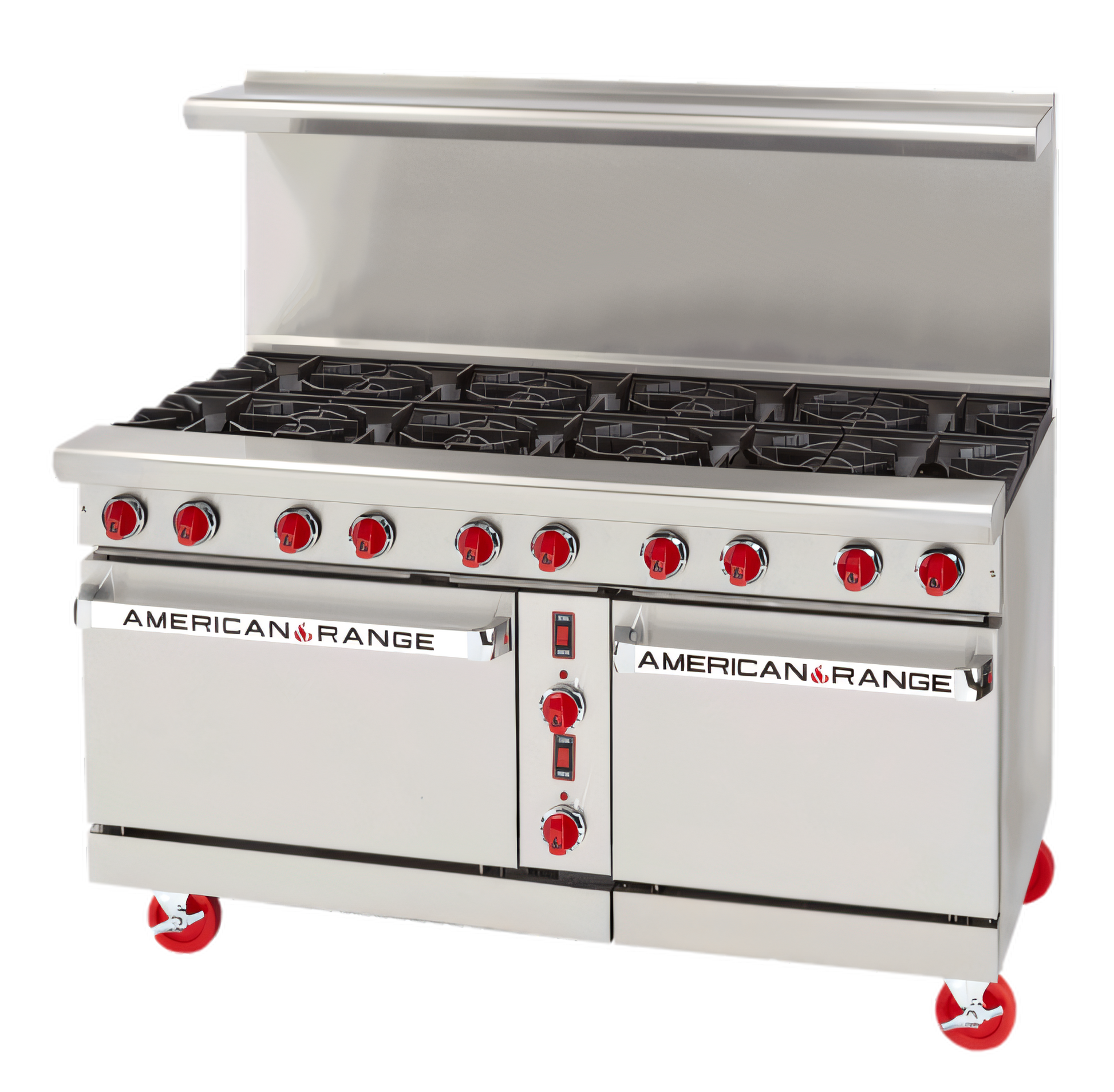 Built for the busiest commercial kitchens, the American Range Green Flame series delivers high-efficiency, pilotless performance in a single, hard-working footprint. With six high-output burners, a full-size griddle and two independent ovens, this 60" range gives your team the flexibility to sear, sauté, grill and bake—all at once.