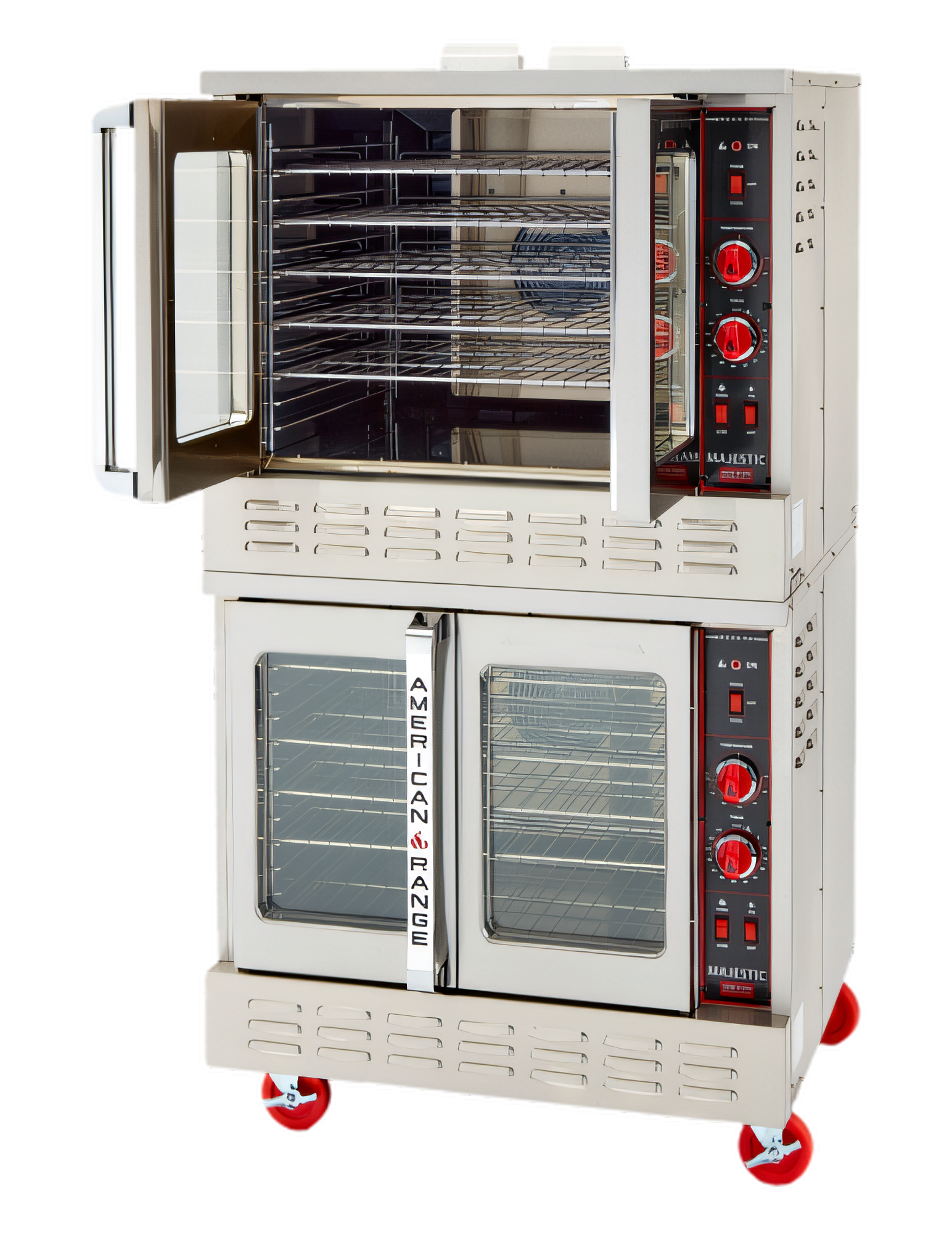 Built for high-volume kitchens that refuse to compromise on efficiency or bake quality, the American Range Majestic HE MSD-2HE delivers the power of two full-size convection ovens in a space-saving footprint. Precision thermostatic control, a rugged porcelainized interior and a hard-working ½ HP two-speed fan give you the consistency you need—batch after perfectly browned batch.