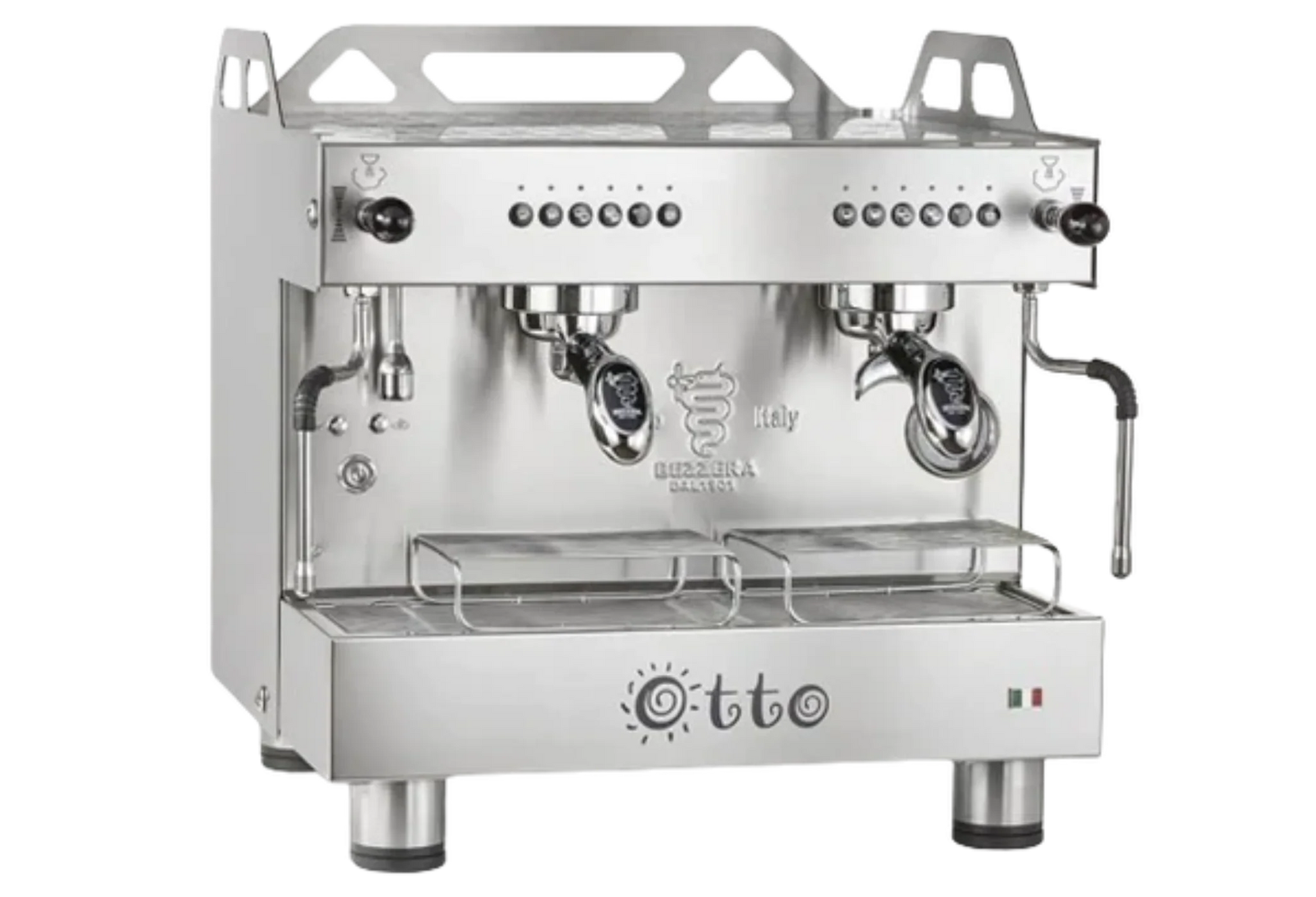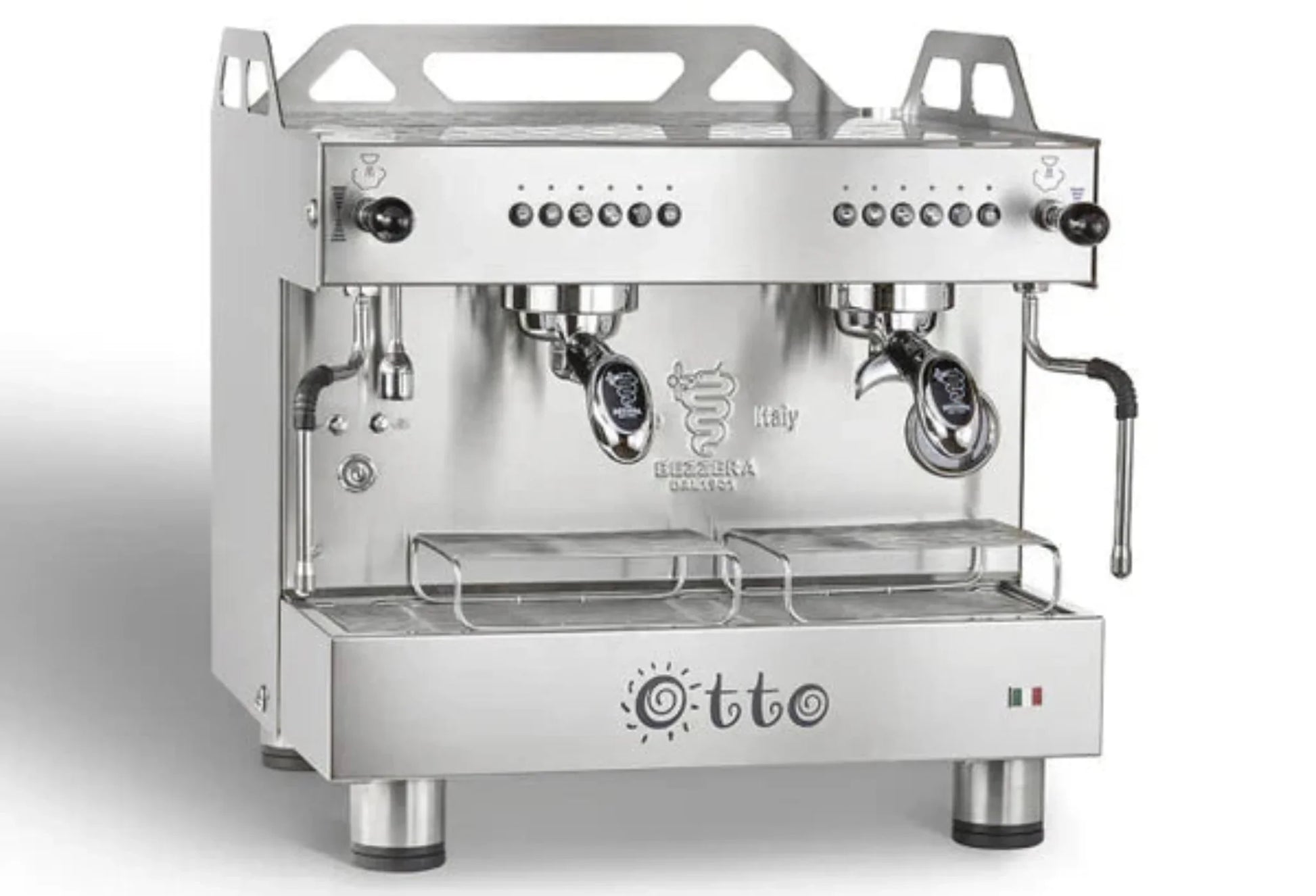Otto Bezzera Espresso Machine, automatic, compact, (2) groups, thermostatically controlled, 2.1 gallon (8 Liters) copper boiler, built-in volumetric pump, 2 manual steam output, 304 stainless steel construction, 220v/50/60/1-ph, 2600 watts, 15 amps, CE, Made in ItalyÂ