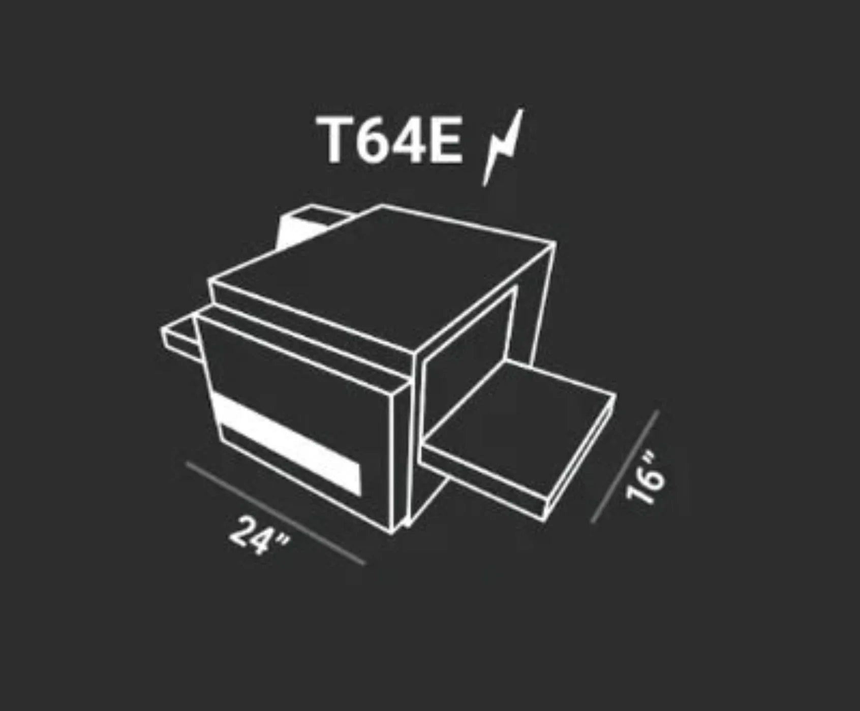 A: The T64EV1 features a compact 24" x 16" x 3" chamber, perfect for baking small to medium pizzas with consistent results.