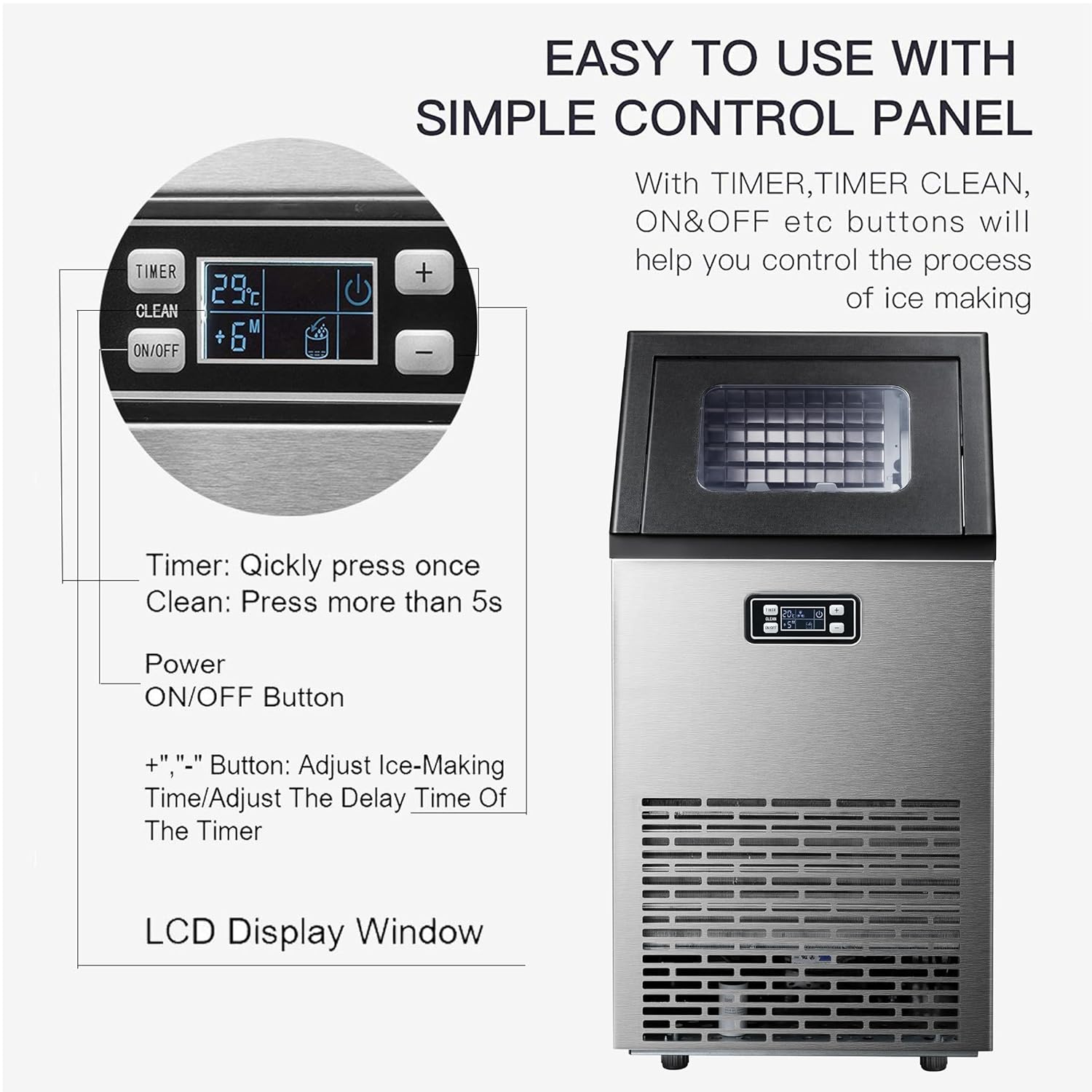 A: Yes, this ice maker is designed for easy maintenance with accessible components and a simple cleaning process to ensure long-lasting performance.
