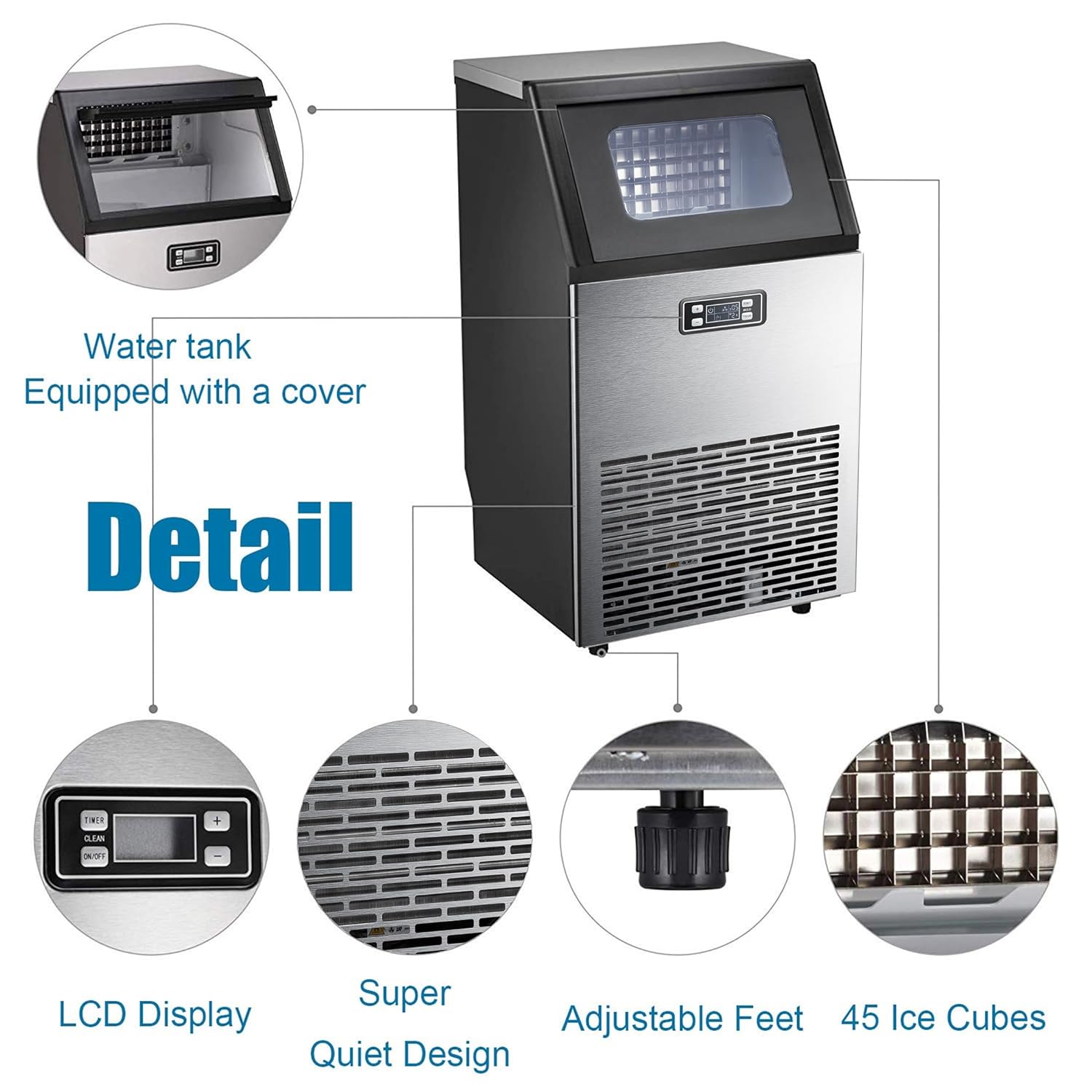 A: The Antarctic Star Commercial Ice Maker Machine (Z5845AS) is a high-performance, stainless steel ice maker designed for commercial use, capable of producing large quantities of clear, high-quality ice quickly.