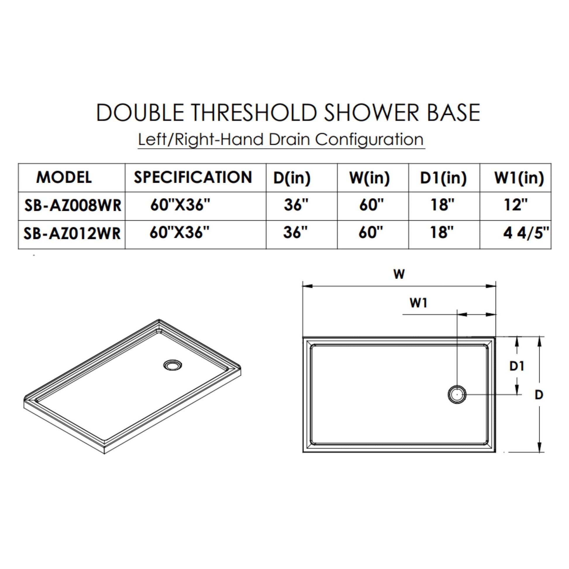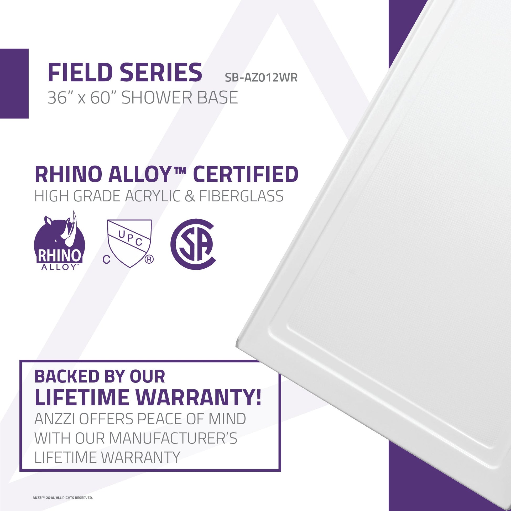 Q: What is the Anzzi Field Series 60 in. x 36 in. Shower Base (SB-AZ012WR)?