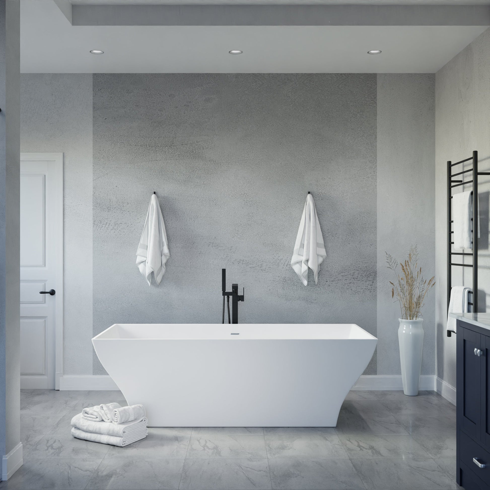 Q: What is the Anzzi Kayenge 5.9 ft. Solid Surface Center Drain Freestanding Bathtub (FT-AZ8419)?