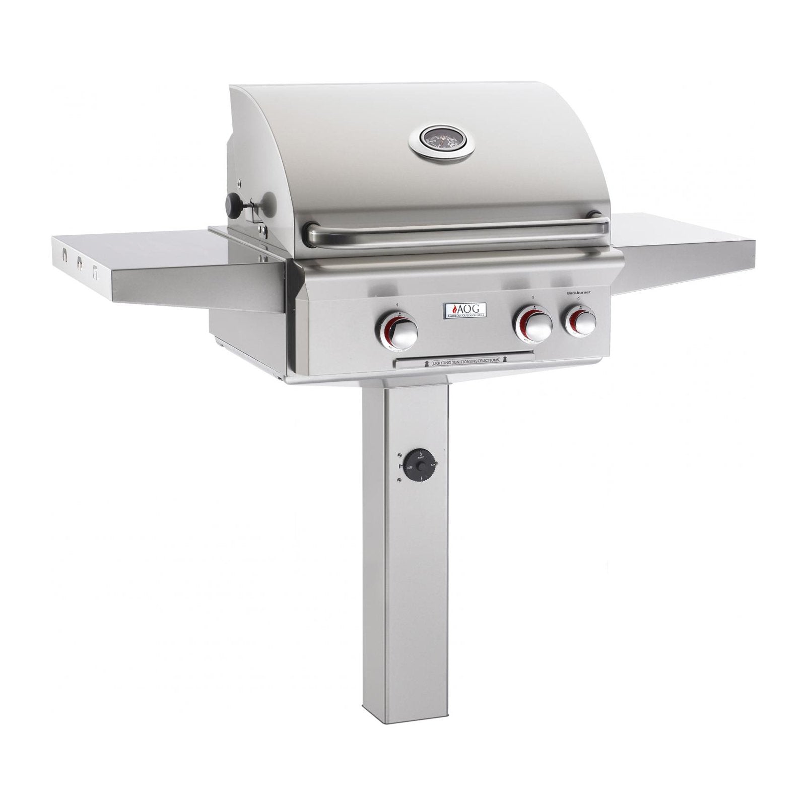 American Outdoor Grill Propane Gas 24-Inch L-Series 2-Burner Grill w/ Side Burner, Rotisserie Backburner and High Performance Rotisserie Kit on In-Ground Post - 24PGL