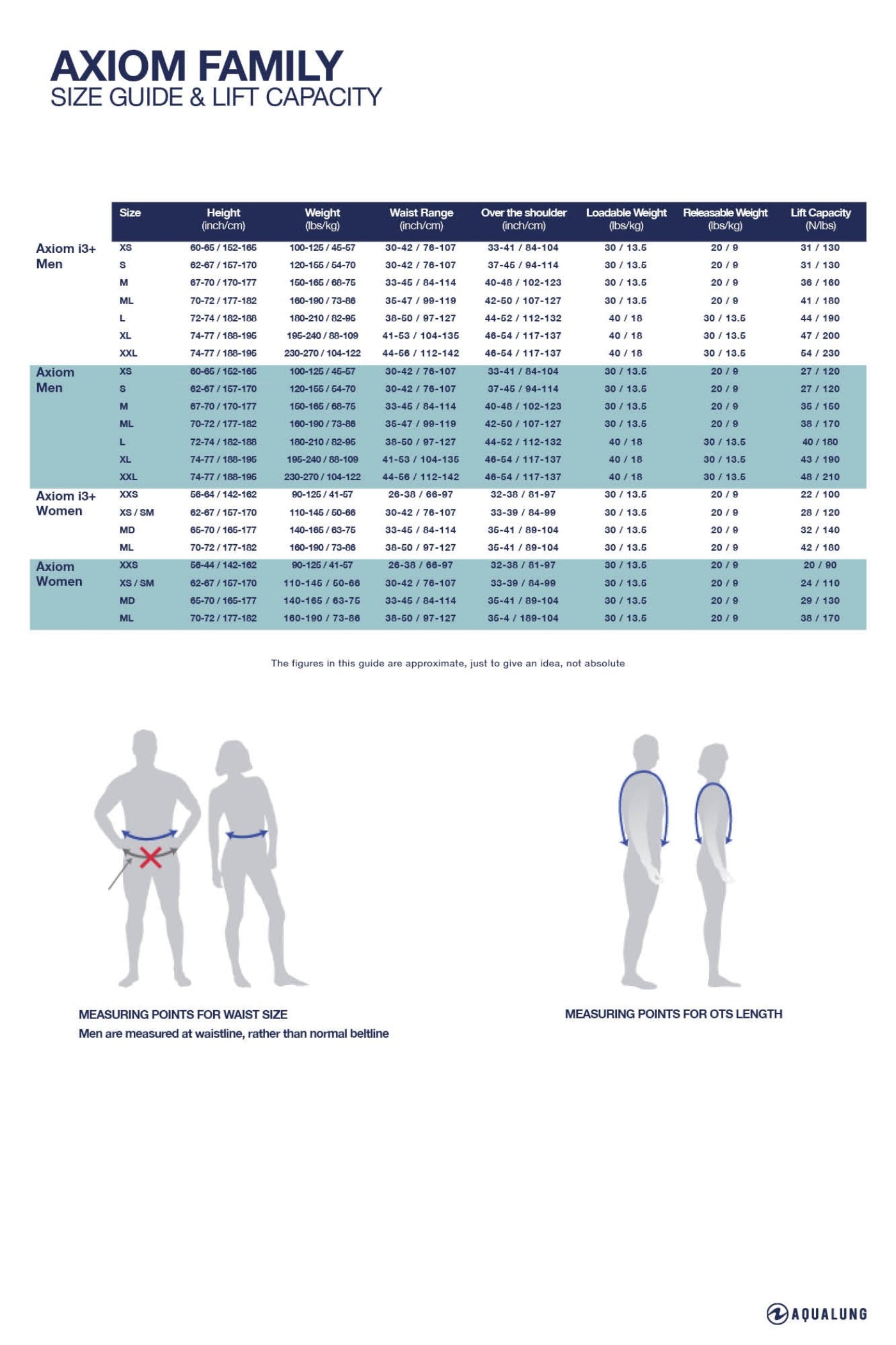 | Lift Volume (lbs/N) | XS: 31/130, S: 31/130, M: 36/160, ML: 41/180, L: 44/190, XL: 47/200, 2XL: 50/230 |