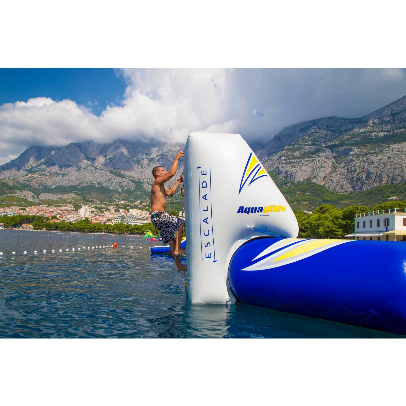 Climbing routes, both from the water and from the trampoline, are supported with reinforced handles and oversized footsteps. Connect a Blast II launch bag at the base for jaw-dropping thrills boosted by Escalade elevation. This inspiring product makes the perfect complement to Aquaglide SuperTramp. The Escalade series is available in a challenging 6ft wall Escalade 2M and a towering 8ft wall Escalade 3m. Both options connect to our SuperTramps via the easy to use Vario- Lock cinch strap system.Â