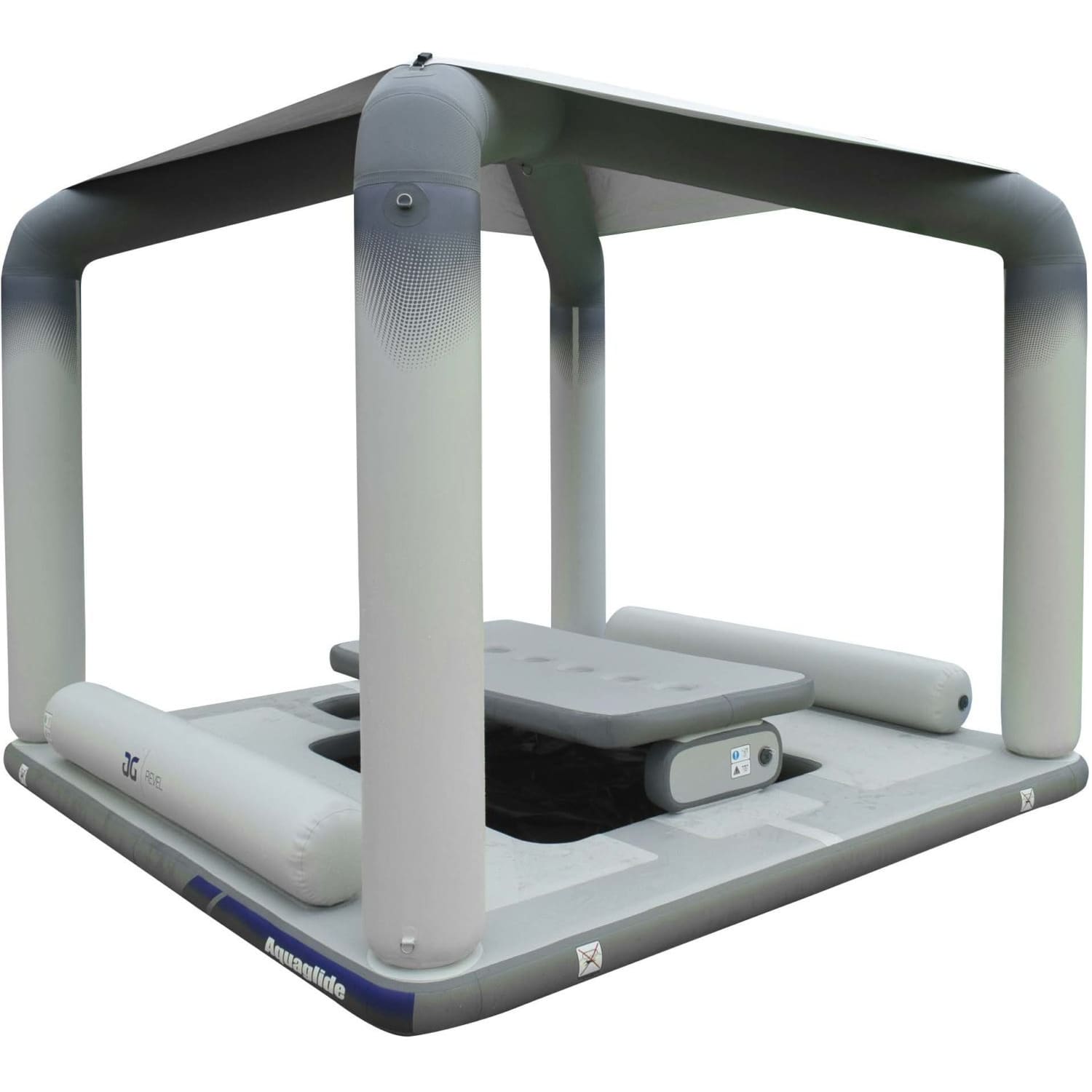 Ultimate Relaxation: The Aquaglide Revel Lounge CX3 offers a shaded, tatami-style seating area with inflatable backrests, perfect for lounging or socializing on the water.