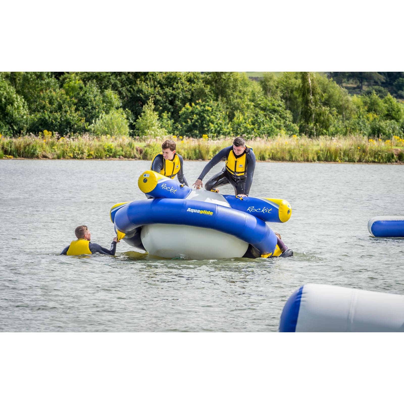 Provides endless opportunities to balance, roll it, and Rockit. One of our most popular products, this versatile, circular water rocker offers a variety of stations to accommodate participants of all sizes and age groups with users working individually or as a team. There are two sizes available; the larger Rockit and our smaller Rockit Jr.