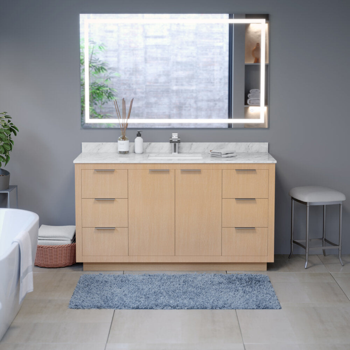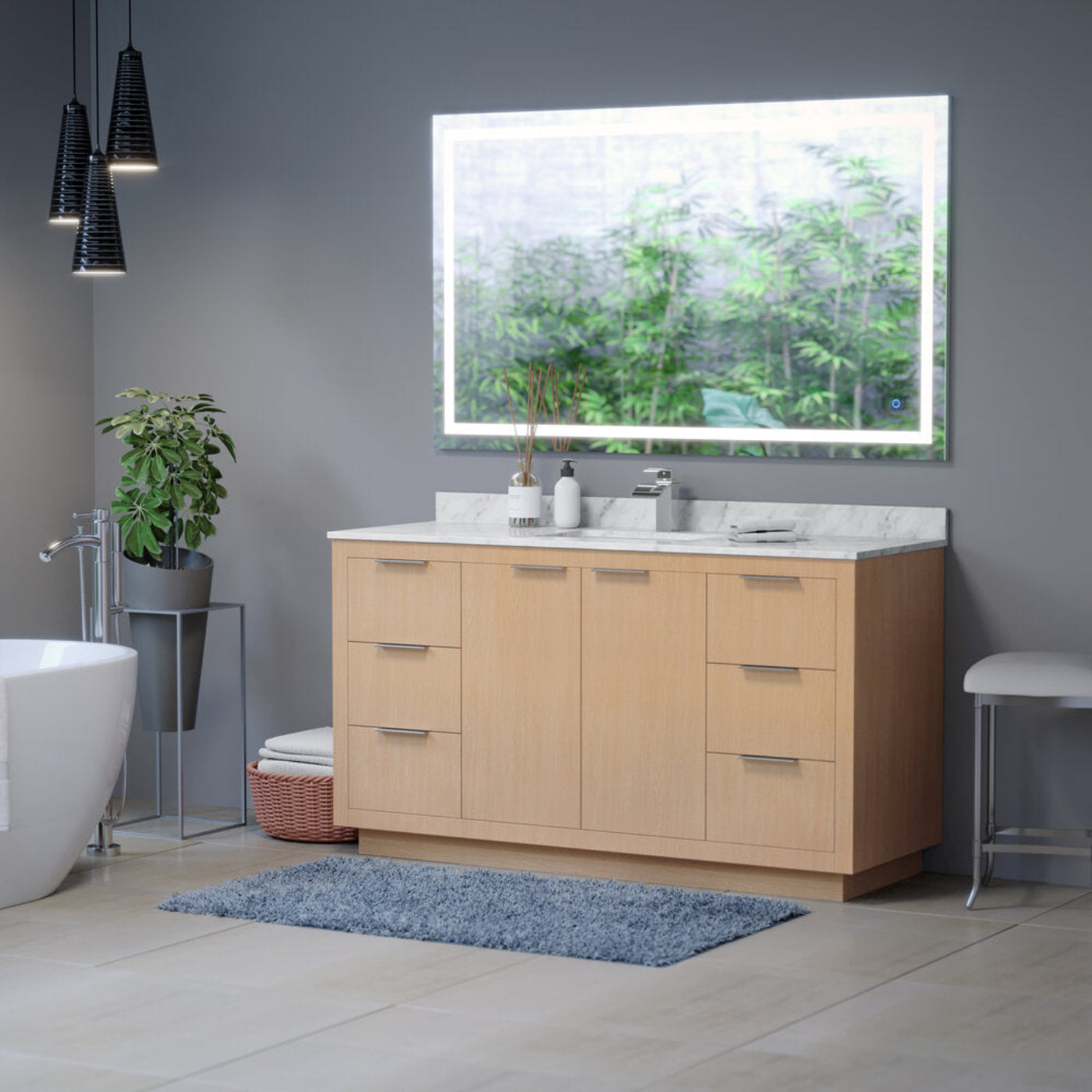 Spacious Statement Piece: At 60 inches wide, it’s perfect for double vanities or large bathrooms.