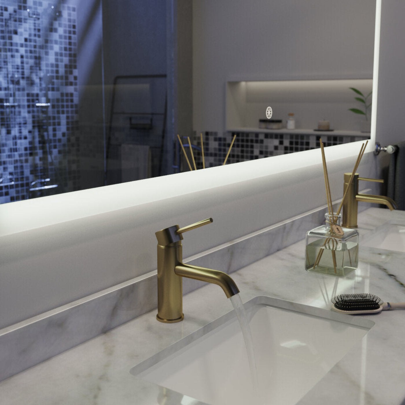 Arpella lighted mirrors provide optimal accent lighting for all bathrooms. The Arpella lighted mirror will be the focal point of your bathroom with its elegant, modern yet simple design. Brighten up your bathroom today.
