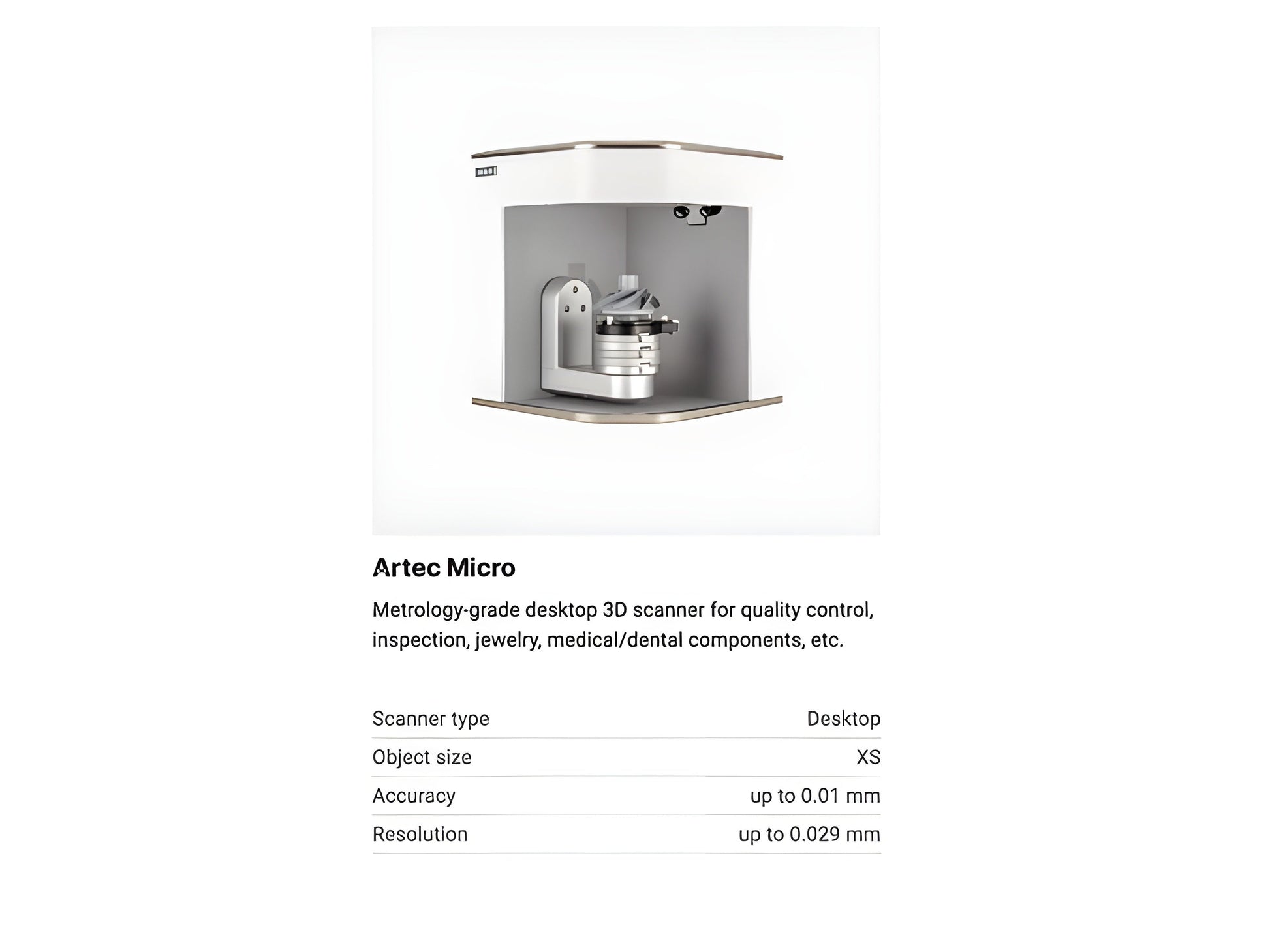 A: The Artec Micro is a high-precision desktop 3D scanner designed for detailed scans of small objects, and this demo unit provides a cost-effective option for customers to try the technology.