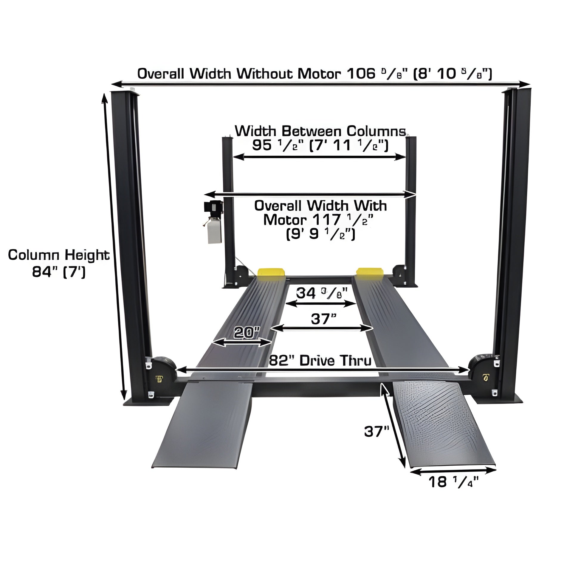 | Clearance Between Columns | 95 1/2" (7' 11 1/2") |