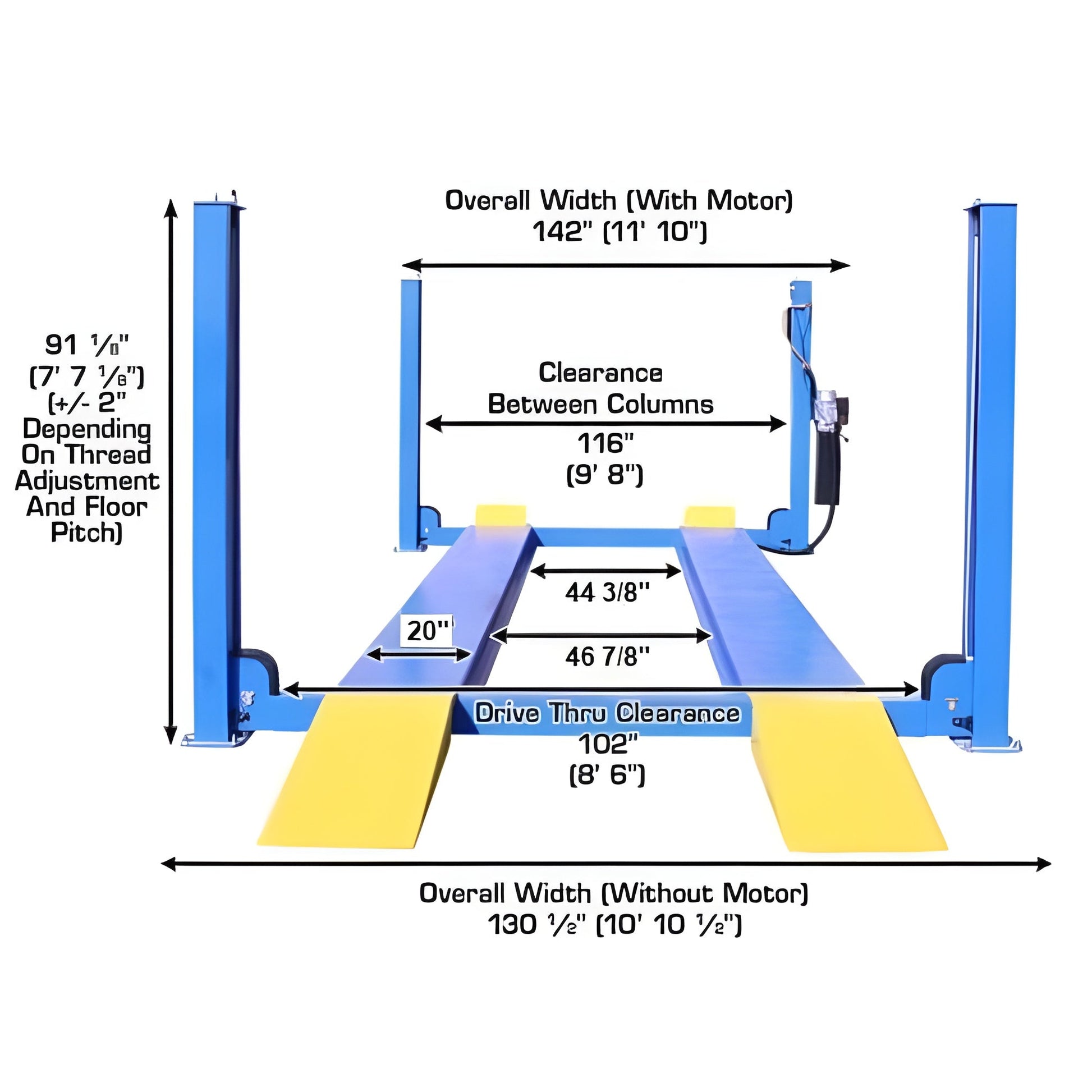 The Atlas 414 14,000 pound capacity heavy duty four post lift is designed and built to commercial grade standards and will provide many years of service. Our Atlas lifts offer many exclusive features not found on many other competitor’s lifts.