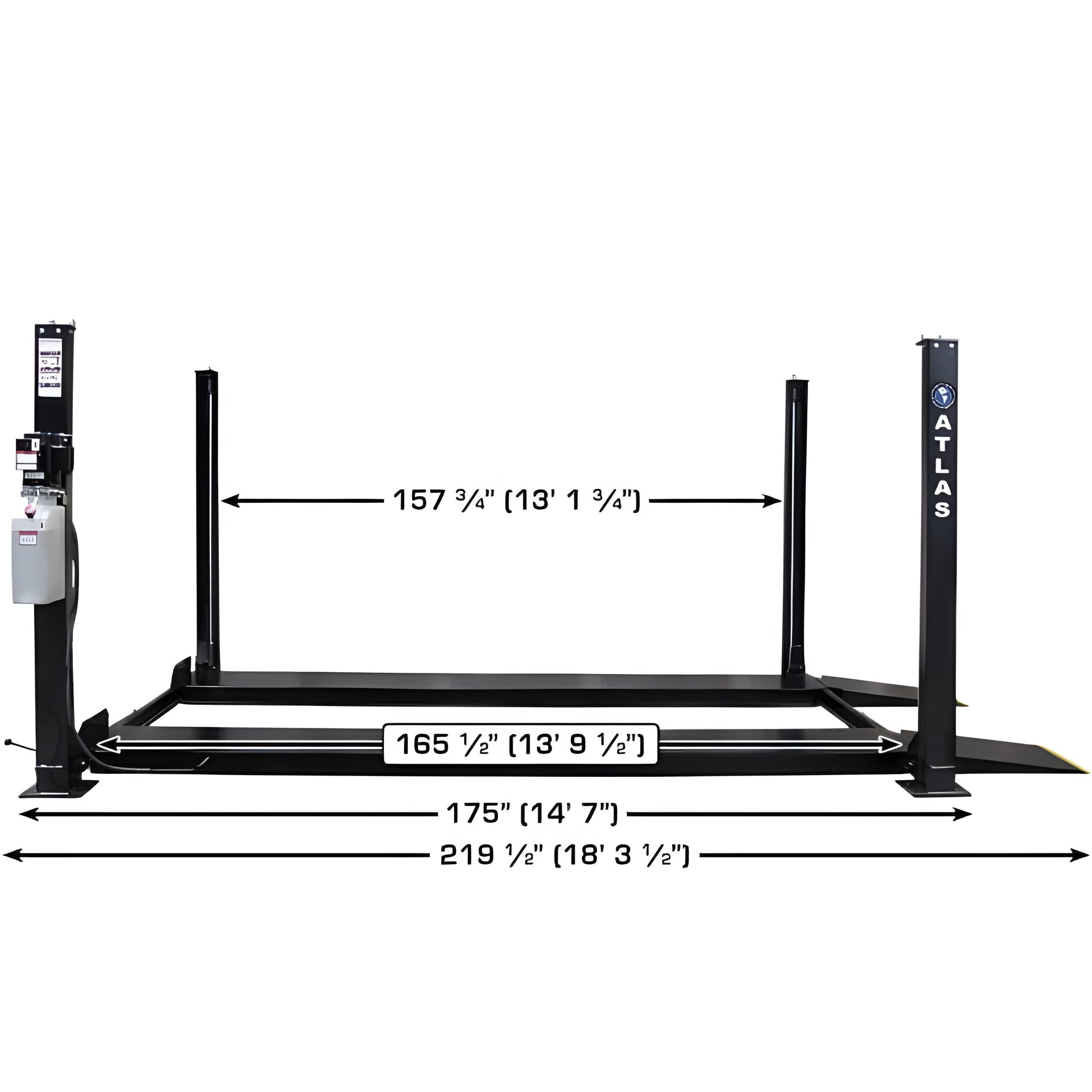 The Atlas APEX8 is an ALI version of our most popular 4-post hobbyist lift, the Atlas Garage PRO8000. Perfect for the customer with too many cars and not enough space. The APEX8 allows the user to easily double their space by stacking most passenger cars.The Atlas APEX8 is designed and built for use by homeowners or restoration shops. This lift is not recommended for use in commercial repair shops where it would be raised and lowered several times per day.The AtlasAPEX8 is nearly 200 lbs. heavier than comparable lifts in the market. It includes a free caster kit with polyurethane wheels. The caster kit can be installed or removed in just a matter of minutes making the lift portable and allowing it to move between bays or even outside. With those features and with the added peace of mind of the ALI Certification the APEX8 is one of the best values in our four-post hobbyist product line.This combo package also includes two of the popular Atlas RJ35 sliding bridge jacks. The jacks are perfect for raising a vehicles wheels off the lifts runways in order to service tires and brakes.