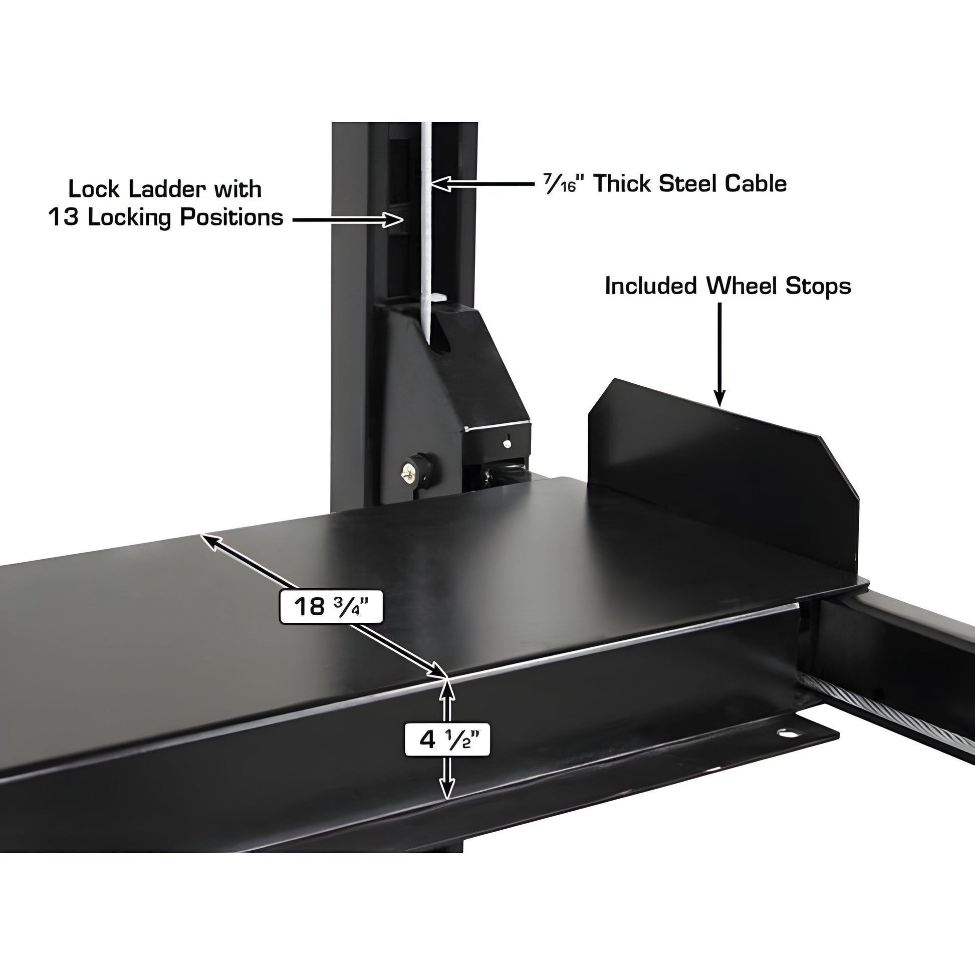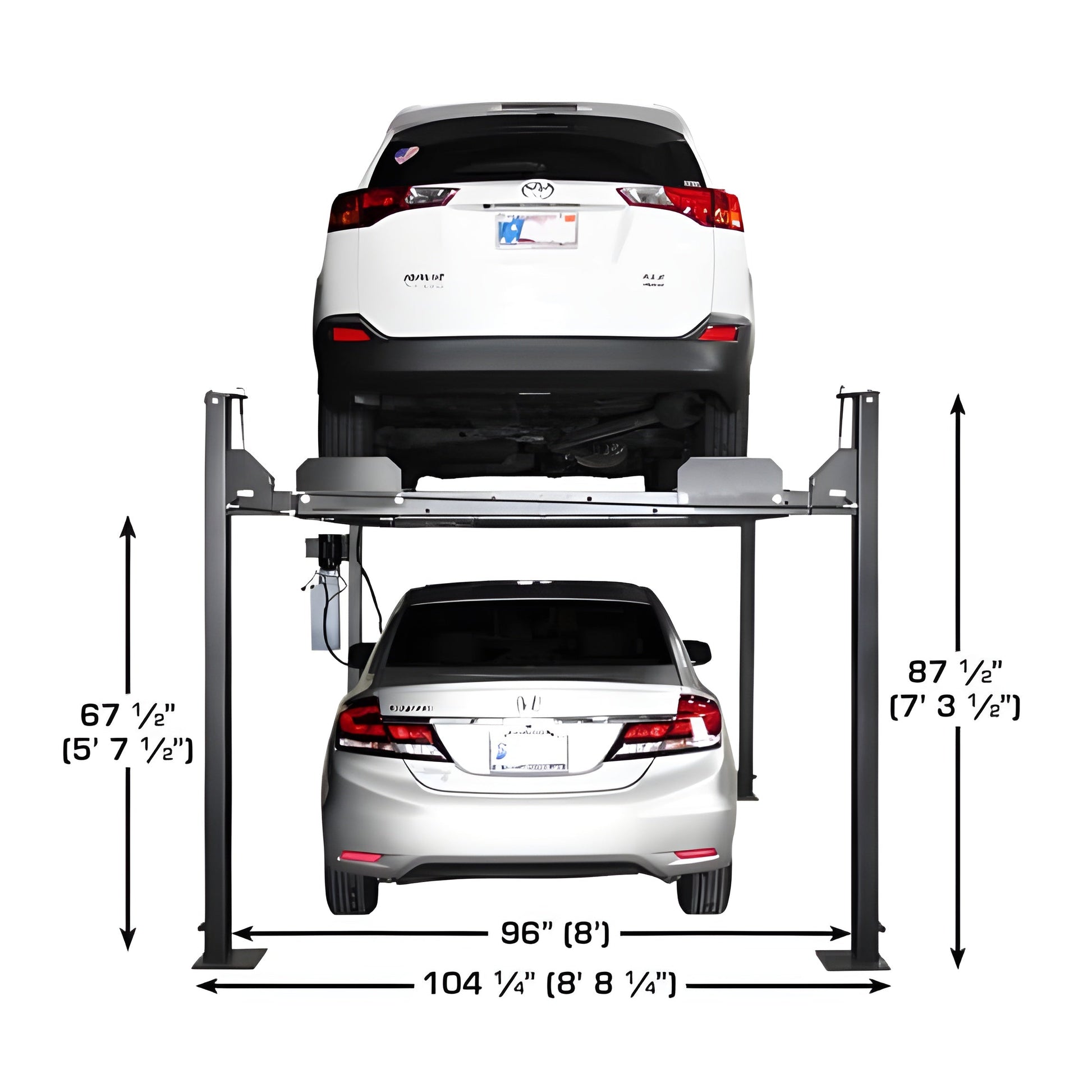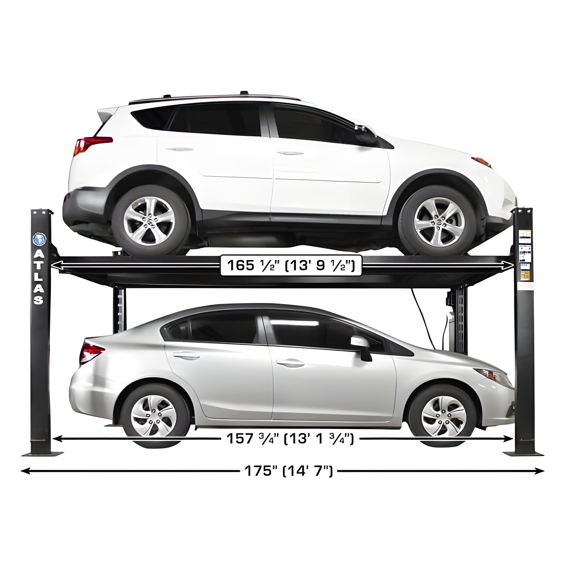The Atlas APEX8 is an ALI version of our most popular 4-post hobbyist lift, the Atlas Garage PRO8000. Perfect for the customer with too many cars and not enough space. The APEX8 allows the user to easily double their space by stacking most passenger cars.