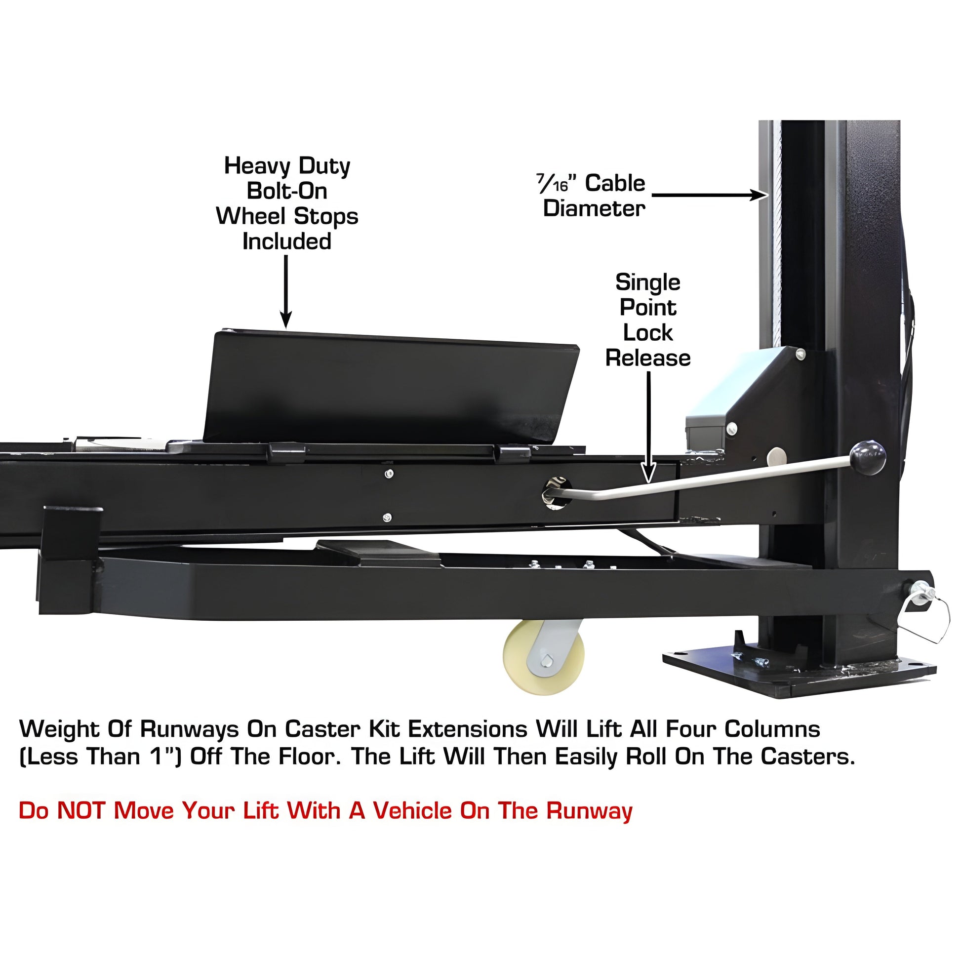 A: It lifts up to 78” with 183” runways for versatile vehicle accommodation.