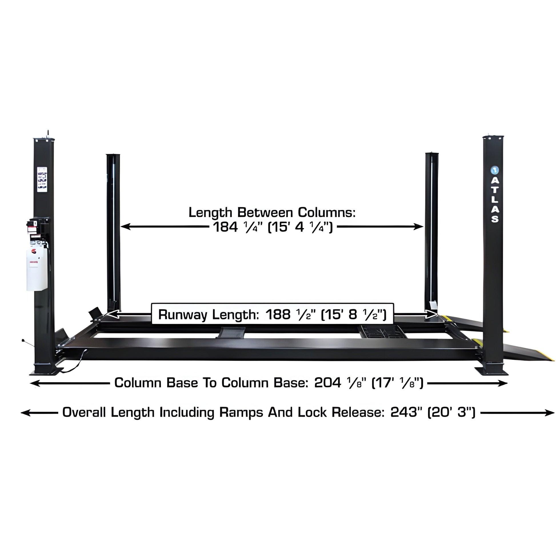 | Length Between Columns | 184 1/4" (15' 4 1/4") |