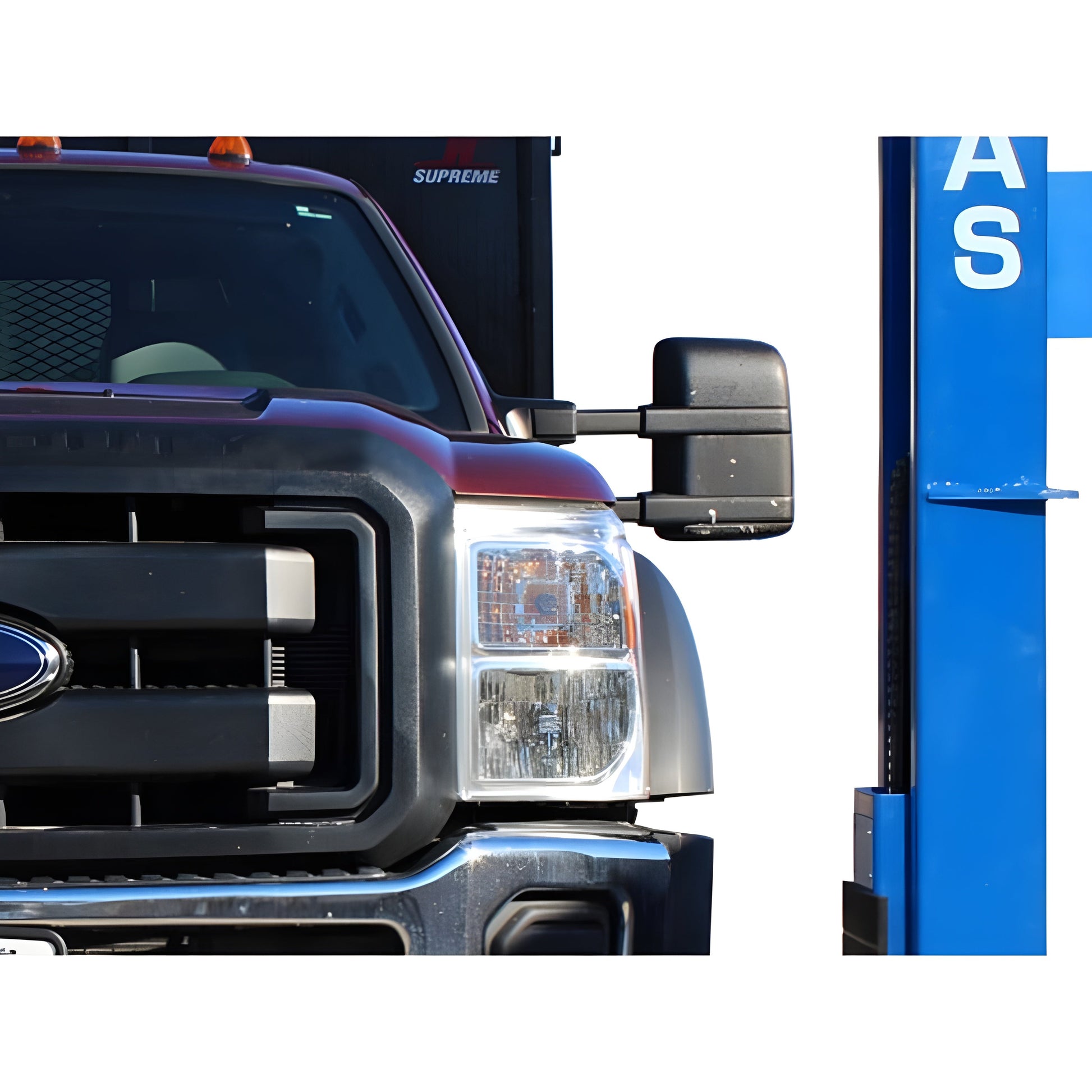 The Atlas BP12000X is a commercial grade heavy duty 12,000 LB. capacity 2 post base plate above ground lift. This above ground lift has over sized columns, symmetric three stage arms, and single point lock release. This lift is perfect for those commercial garages that want to lift heavier vehicles but have limited ceiling height. The Atlas BP12000X can be installed at two different width settings to accommodate wider trucks or trailers and to facilitate βdriving betweenβ the lift columns.