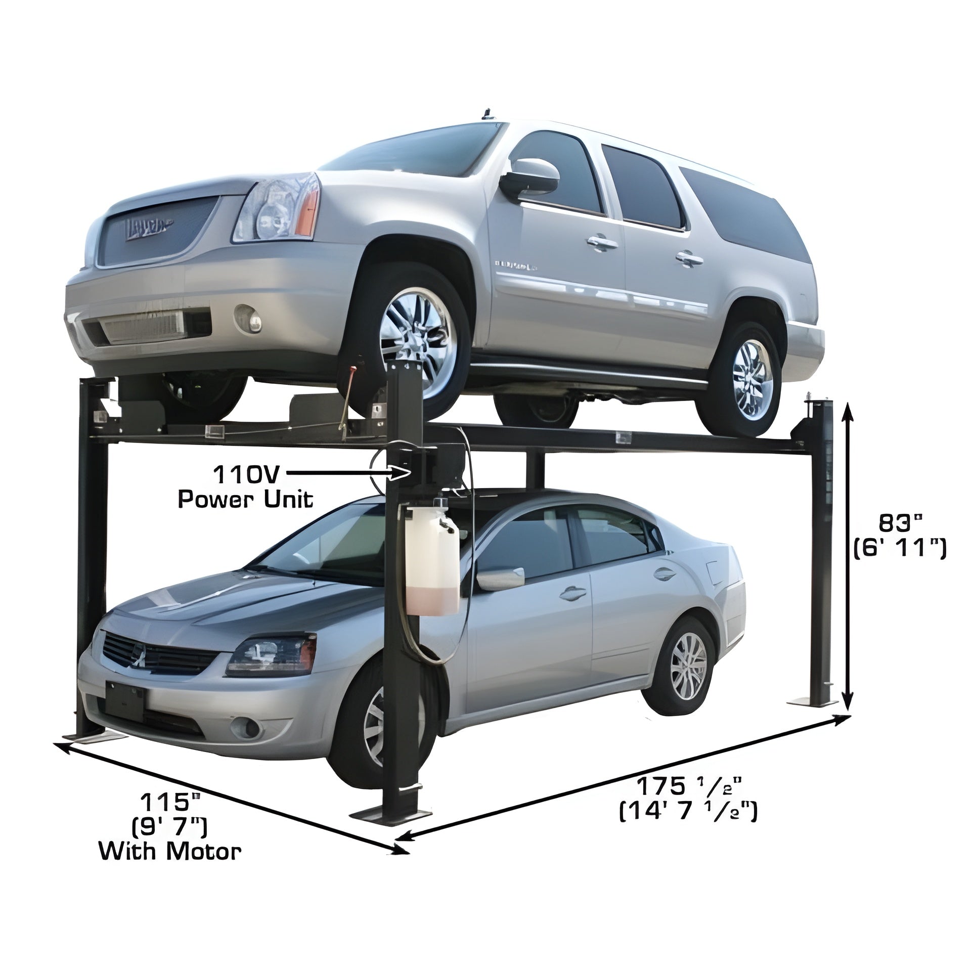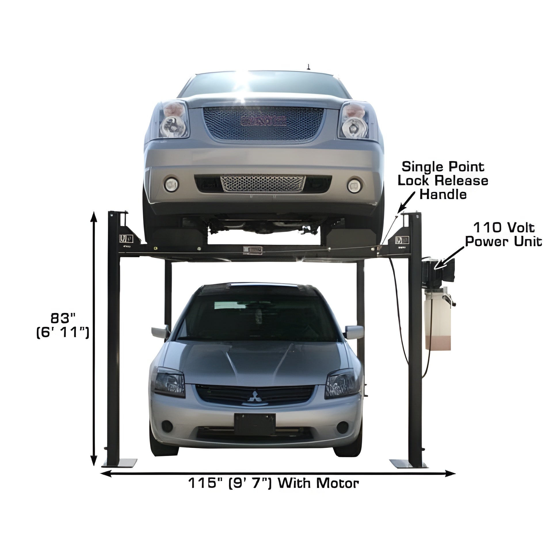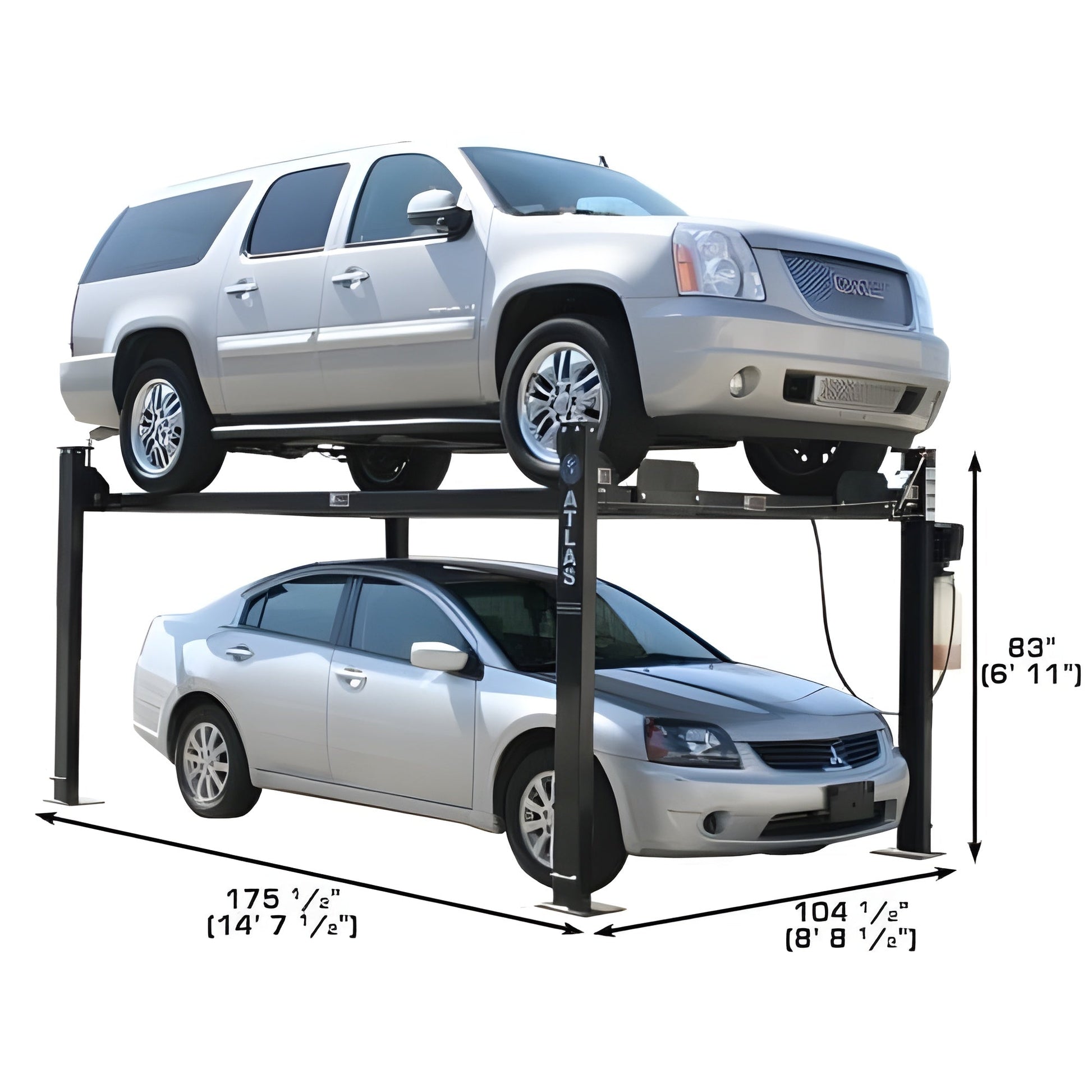 The Atlas Garage PRO8000 is our most popular 4-post hobbyist lift. Perfect for the customer with too many cars and not enough space. The Garage PRO8000 allows the user to easily double their space by stacking most passenger cars.The Atlas Garage PRO series of 4-post lifts (8,000 lb. capacity) are designed and built for use by homeowners or restoration shops. These lifts are not designed for use in commercial repair shops where they would be raised and lowered several times per day. If you have questions about which lift would best work in your application please contact a salesperson..The Atlas Garage PRO8000 includes free plastic drip trays, a free steel jack tray, and a free caster kit with polyurethane wheels. The caster kit can be installed or removed in just a matter of minutes making the lift portable and allowing it to move between bays or even outside. All that makes the Garage PRO8000 one of the best valued 4-post lifts on the market.Many customers who purchased this lift also purchased the Atlas RJ35.
