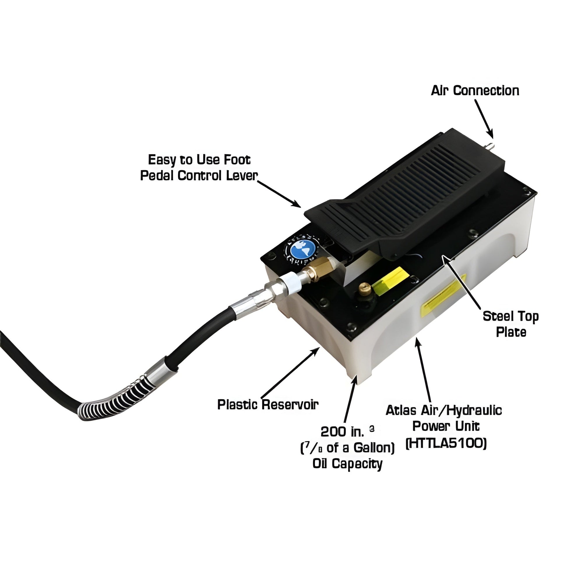 The Atlas LR06 portable 6,000 lb. low rise lift is the perfect addition to any garage that needs a quick sure fire method to raise a car to perform wheel service or body work. The LR06 low rise lift comes with rubber pads on the lifting surface. Multiple lock positions and a unique self actuating lock bar allow the operator to perform wheel service at a comfortable working height.Simply drive the car over the Atlas® LR06 and position the rubber blocks (if needed) under the correct lifting points of the vehicle. Press the button on the unit and lift the vehicle to the desired work height. Depress the “dump valve lever” on the power unit and the lift lowers slightly to the next lower mechanical lock position.This durable lift is built on a heavy steel frame that provides rock solid support for a lifting base. The low-profile design accommodates most low frame vehicles. Due to the horizontal cylinder configuration, it is important to allow some space (2-6 inches) between the lifting surface of the lift and the vehicle’s lifting points.The Atlas LR06 can also be easily moved inside the garage or to an outside concrete apron in front of a bay. The standard wheel kit and the power unit stand work together to allow the operator to roll the LR06 portable low-rise lift across any concrete surface.