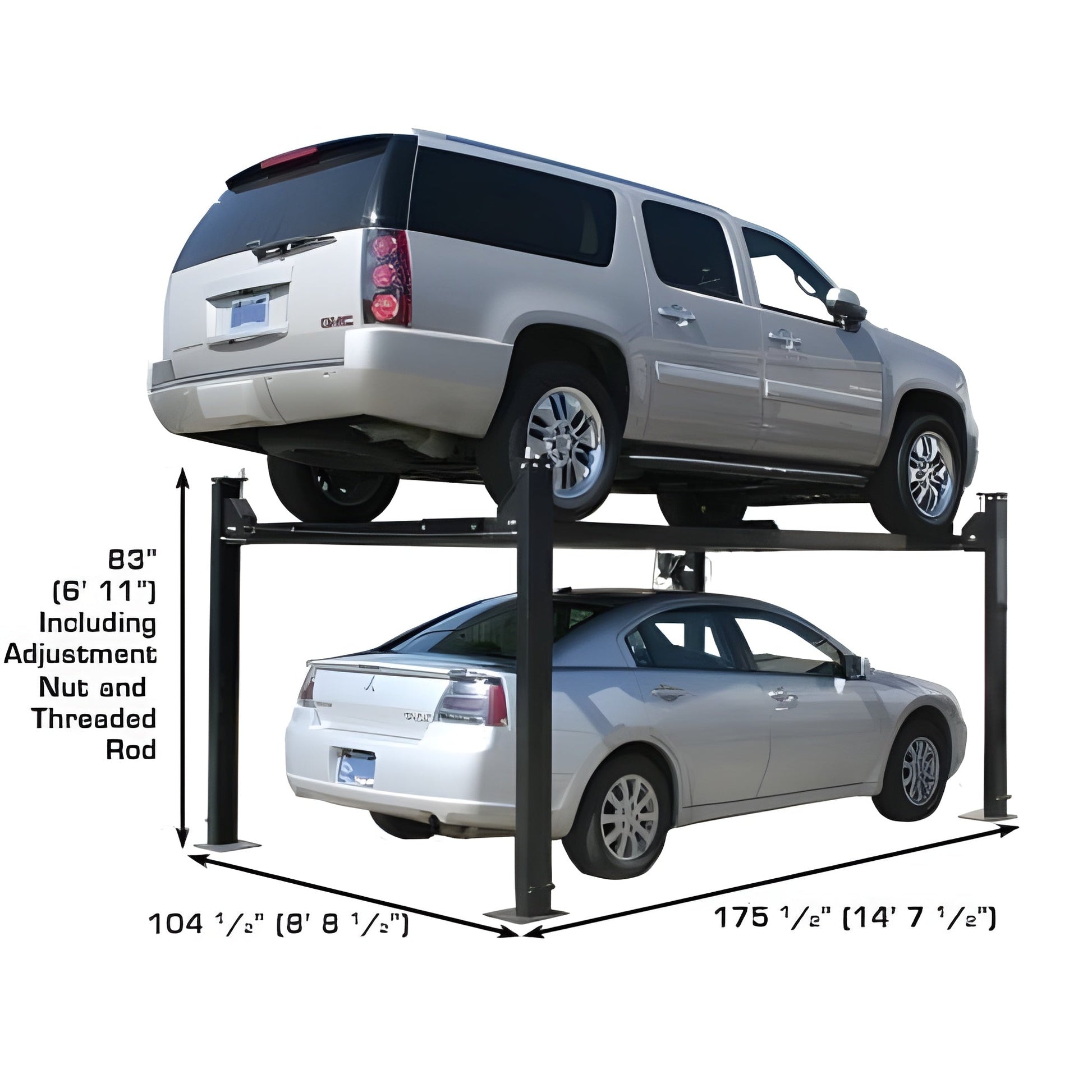 The Atlas Garage PRO8000 is our most popular 4-post hobbyist lift. Perfect for the customer with too many cars and not enough space. The Garage PRO8000 allows the user to easily double their space by stacking most passenger cars.The Atlas Garage PRO series of 4-post lifts (8,000 lb. capacity) are designed and built for use by homeowners or restoration shops. These lifts are not designed for use in commercial repair shops where they would be raised and lowered several times per day. If you have questions about which lift would best work in your application, please contact a salesperson.This combo package also includes two of the popular Atlas RJ35 sliding bridge jacks. The jacks are perfect for raising a vehicles wheels off the lifts runways in order to service tires and brakes.