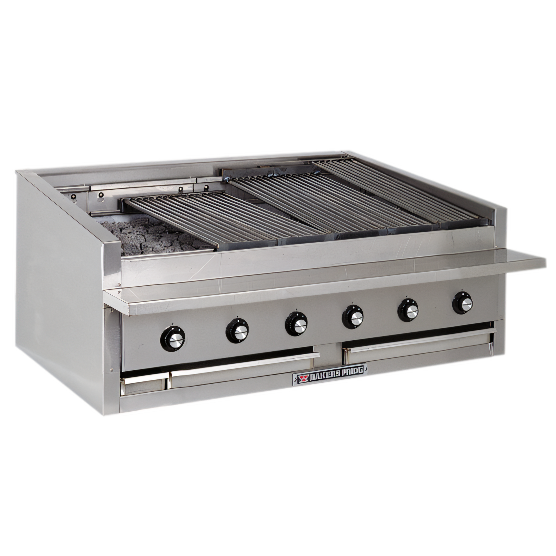 The Bakers Pride L-60RS-C Dante Series Gas Charbroiler is a 60-inch countertop model designed for high-volume commercial kitchens.