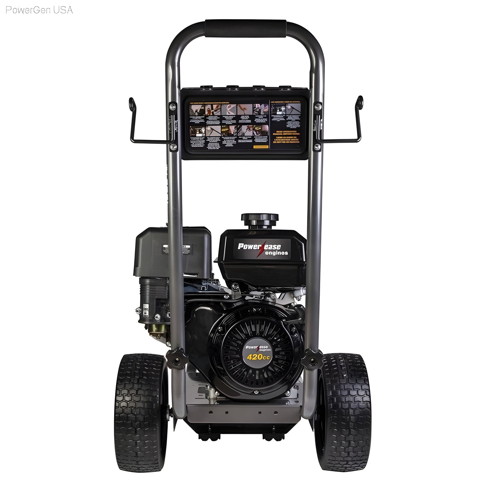 Rugged and reliable Powerease engine drives the pump with power to spare.